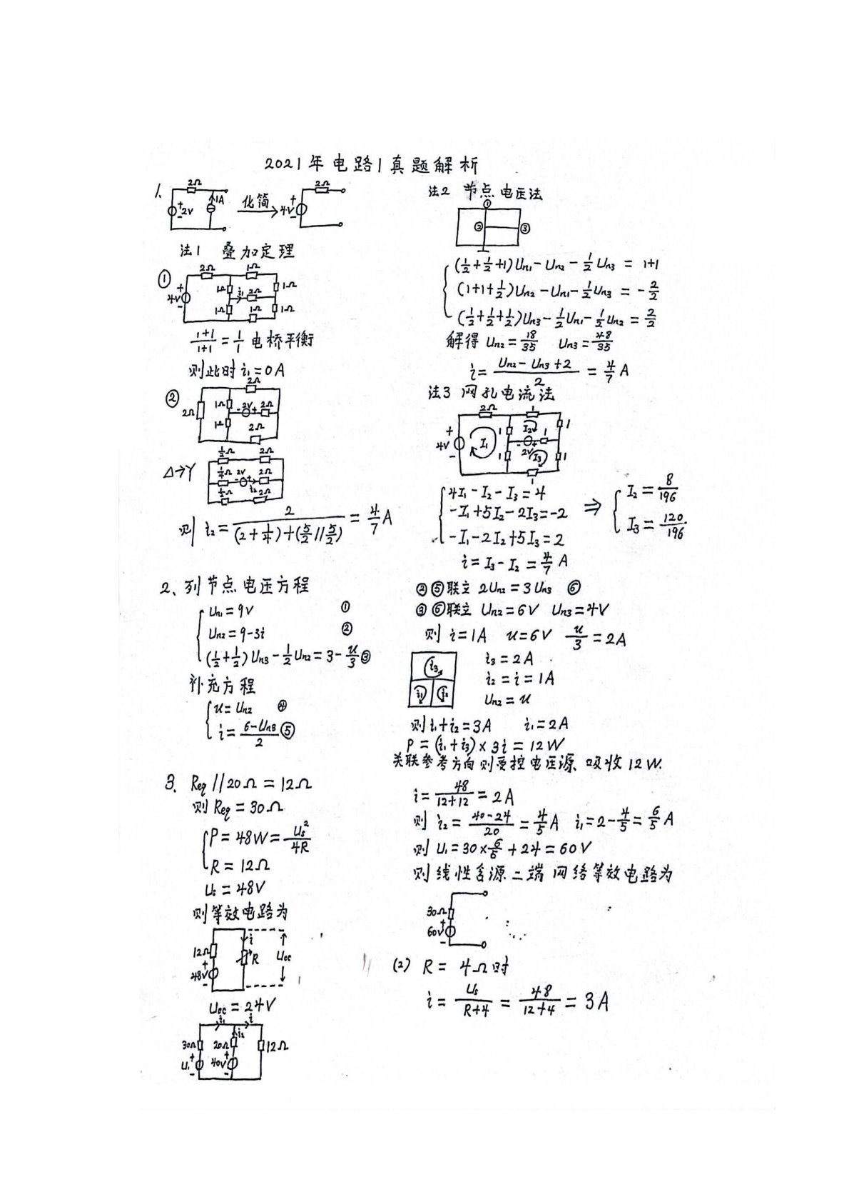 河南理工大学844电路理论2021年真题答案手写版