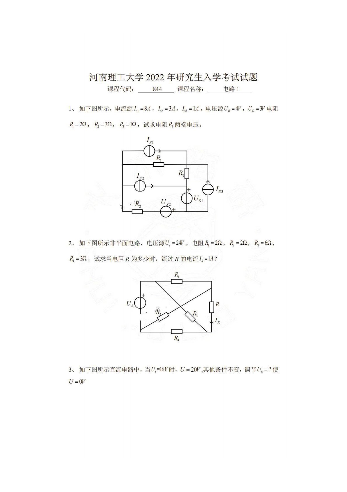 河南理工大学844电路理论2022年真题1