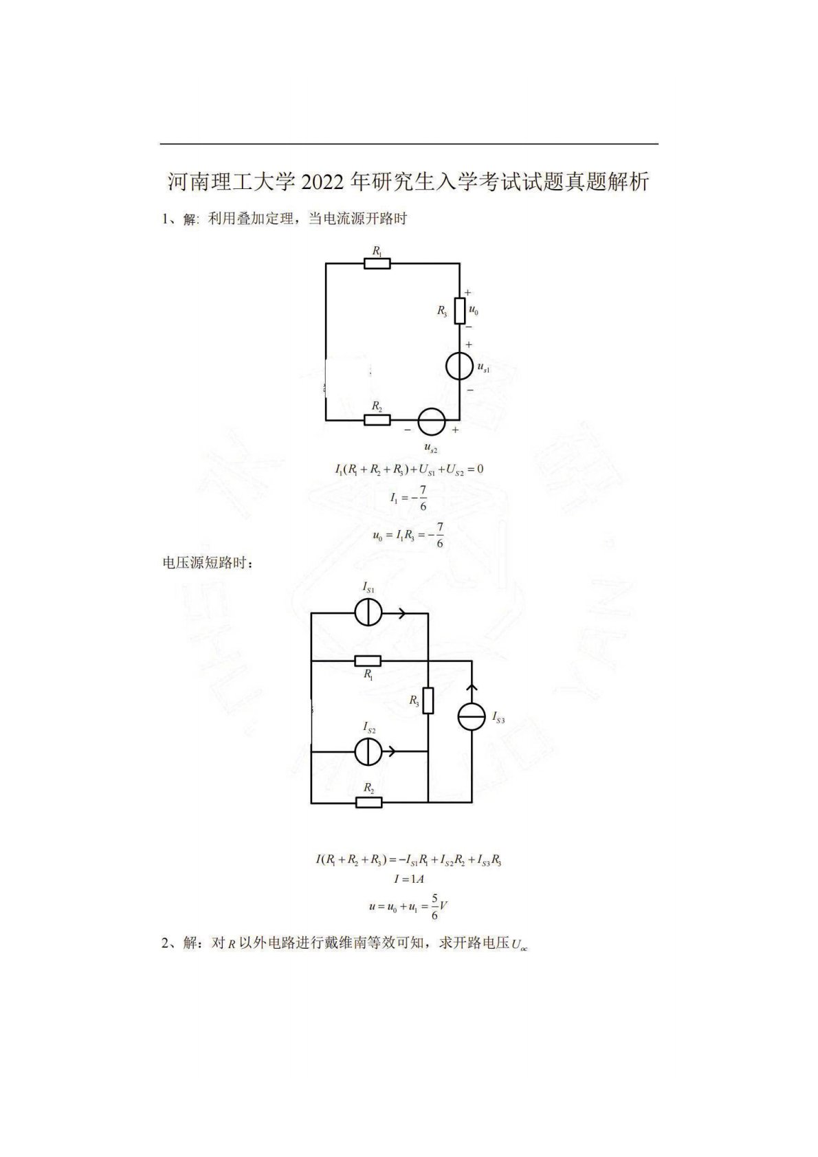 河南理工大学844电路理论2022年真题2