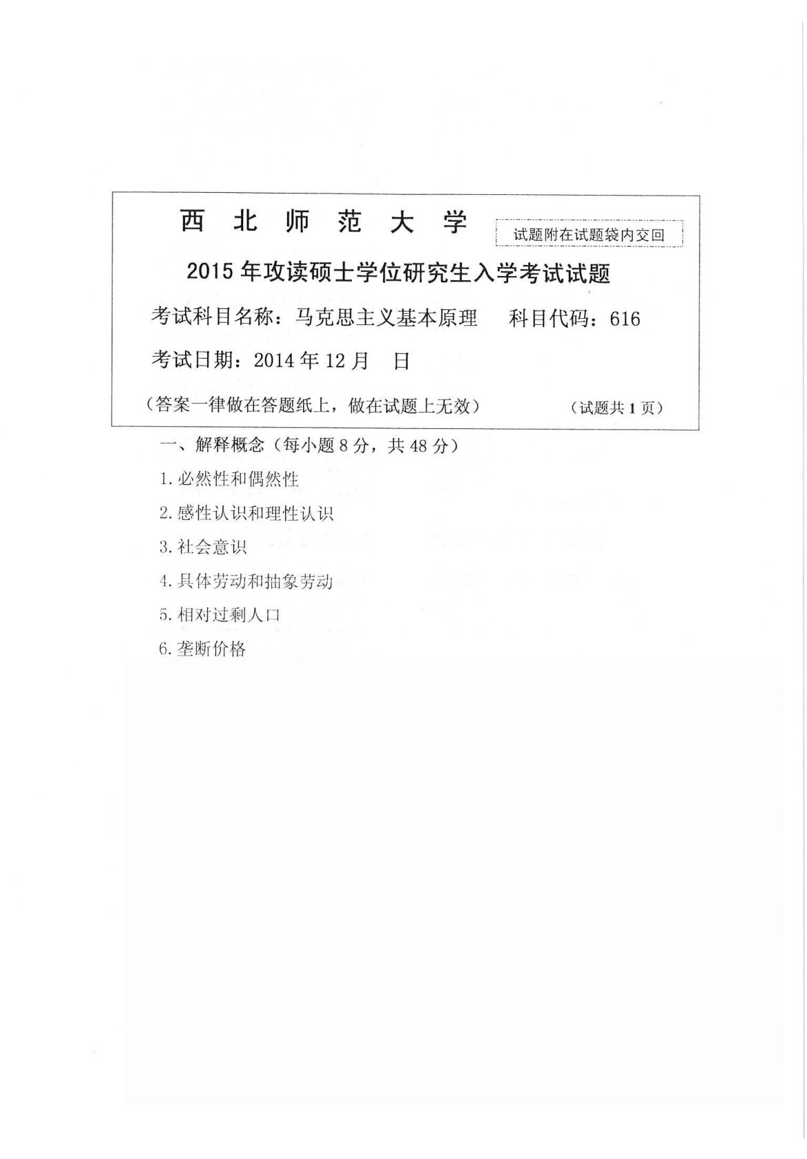 西北师范大学616马克思主义基本原理(含原著)2015年真题