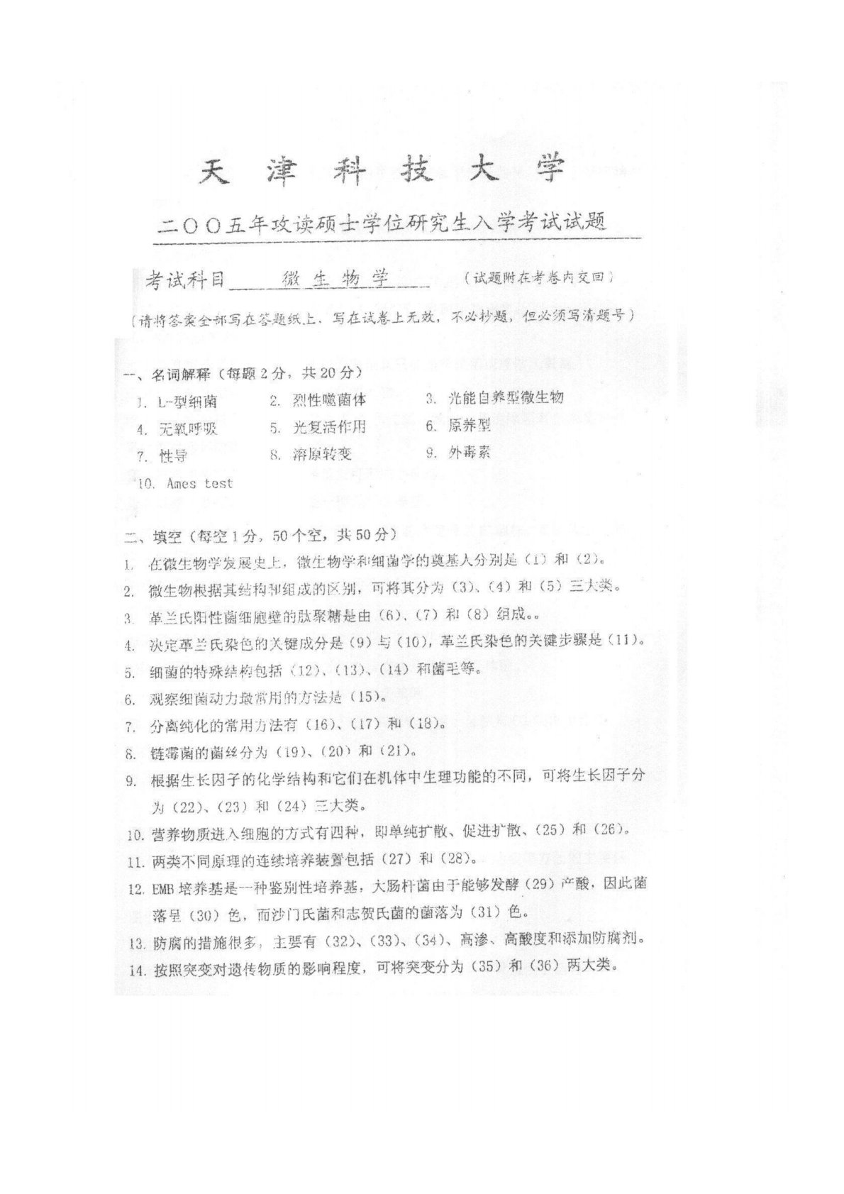 天津科技大学804微生物学2005年真题