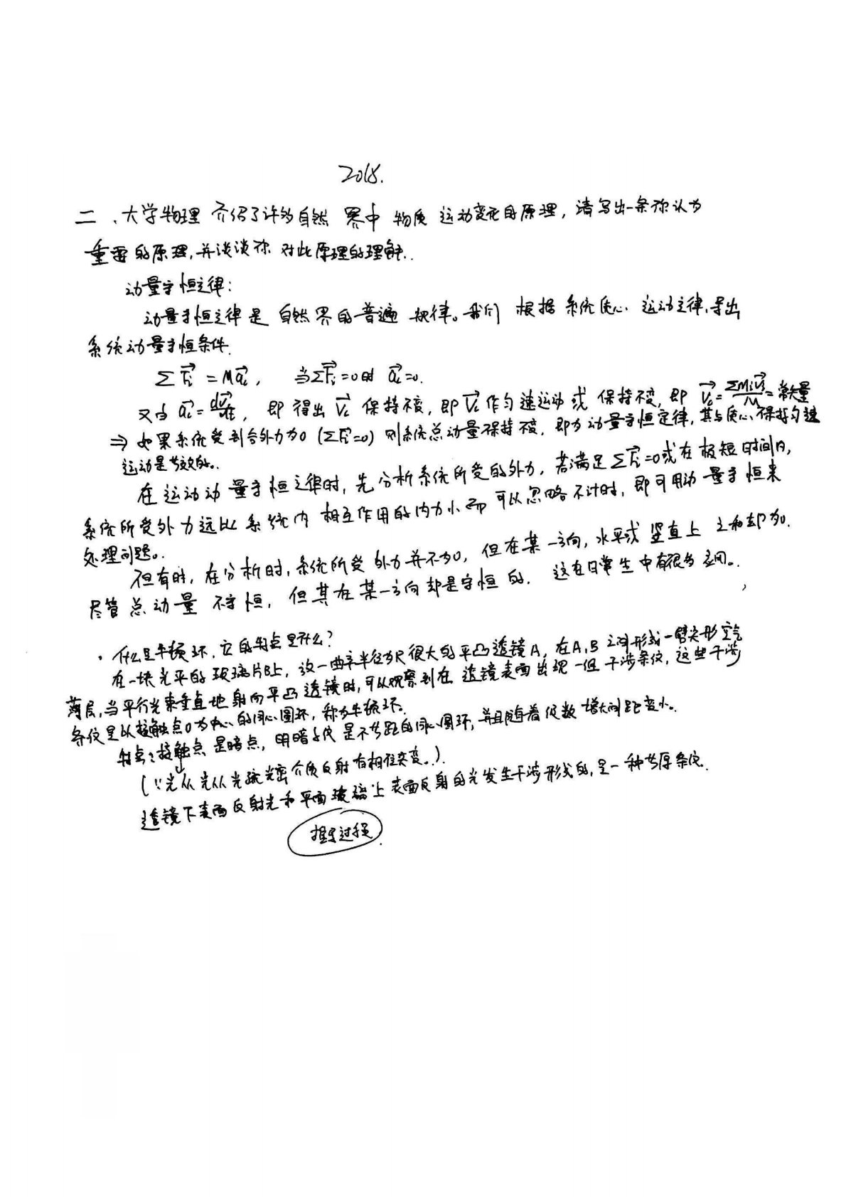 西北大学633普通物理2018年真题及答案手写版