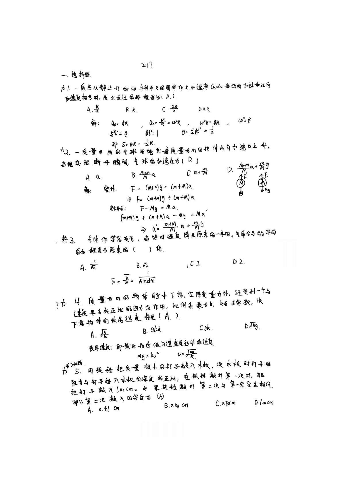 西北大学633普通物理2017年真题及答案手写版