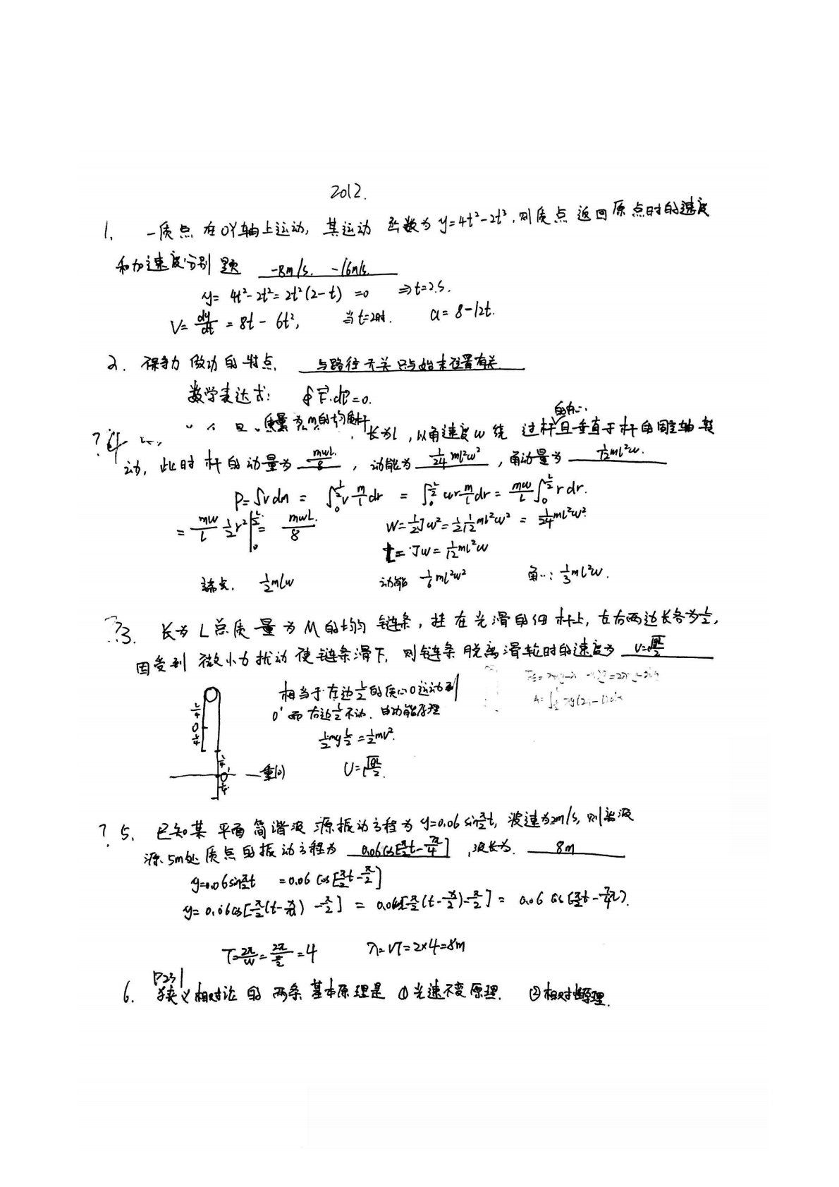 西北大学633普通物理2012年真题及答案手写版