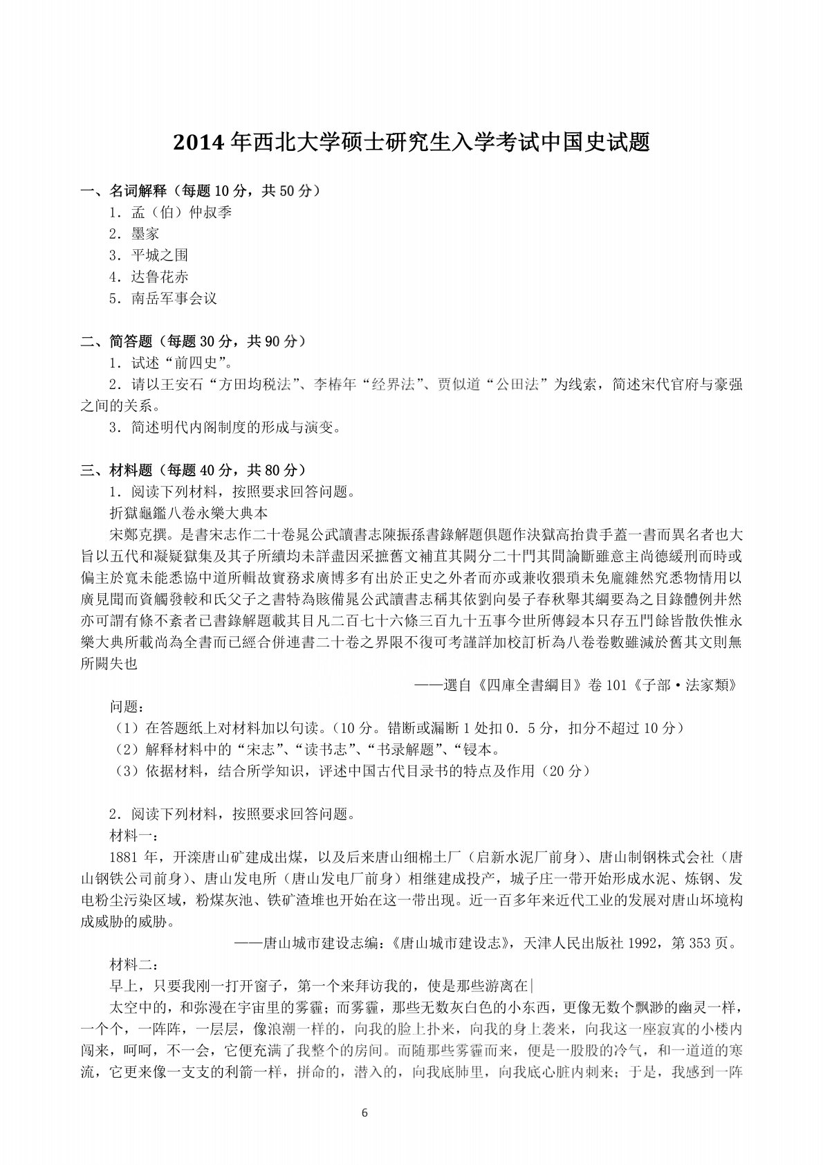 西北大学701中国史2014年真题