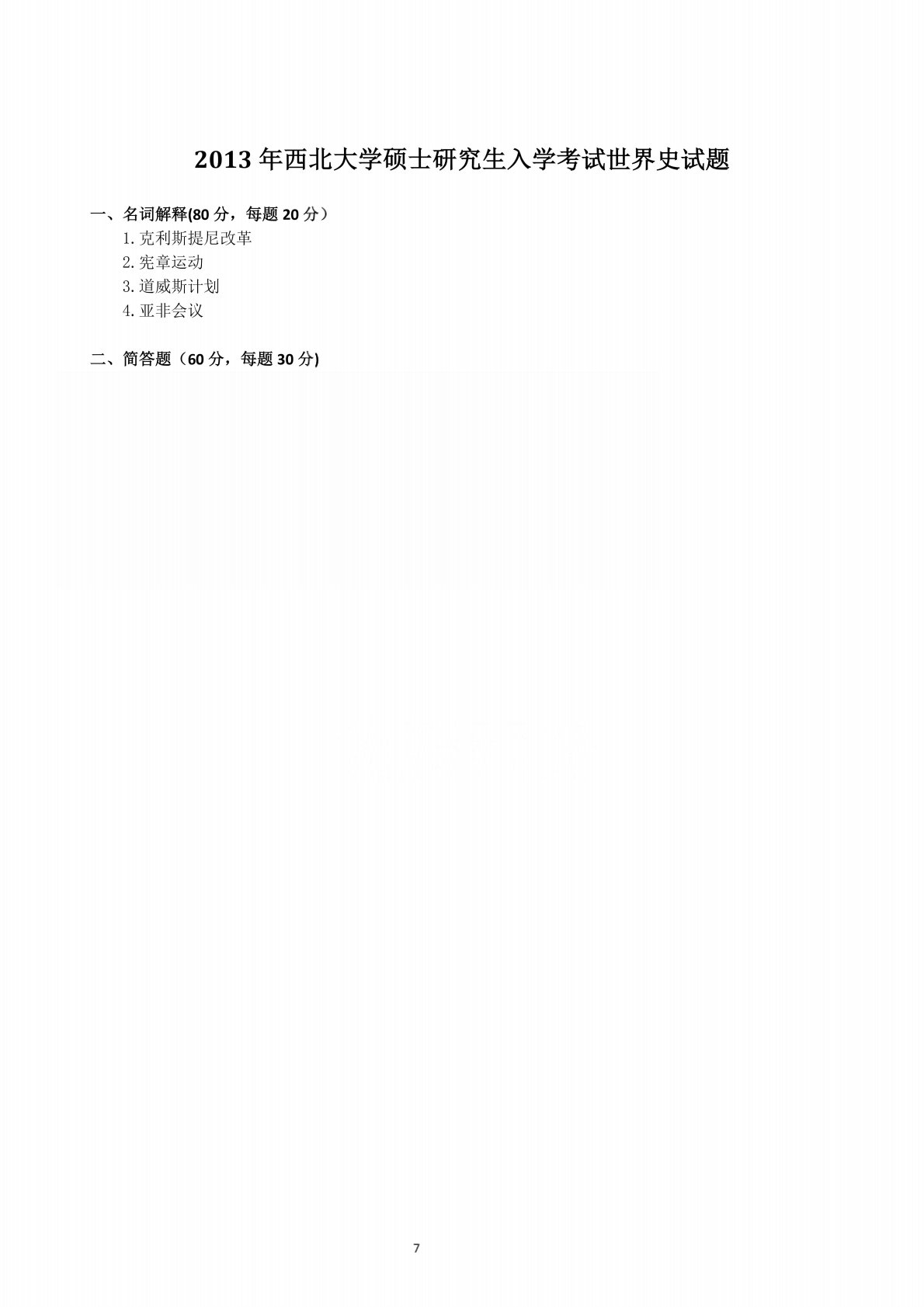 西北大学313历史学专业基础2013年真题
