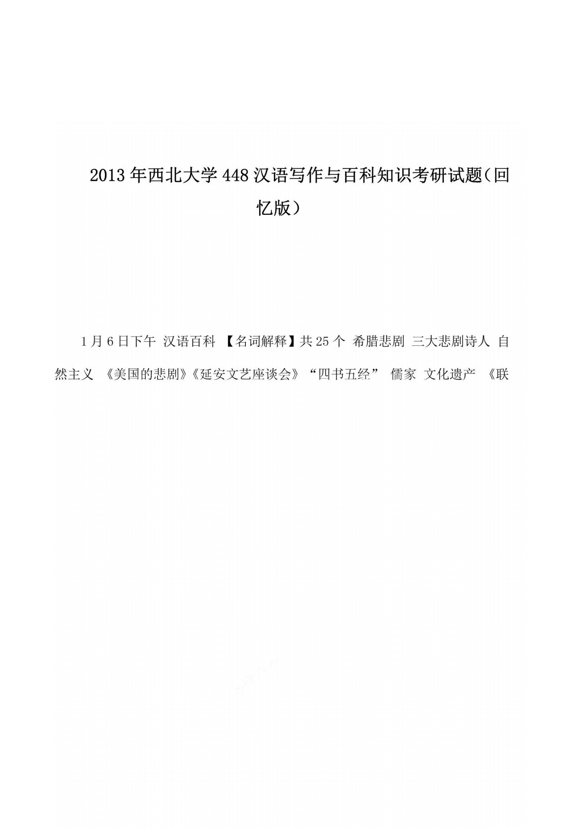 西北大学448汉语写作与百科知识2013年真题回忆版