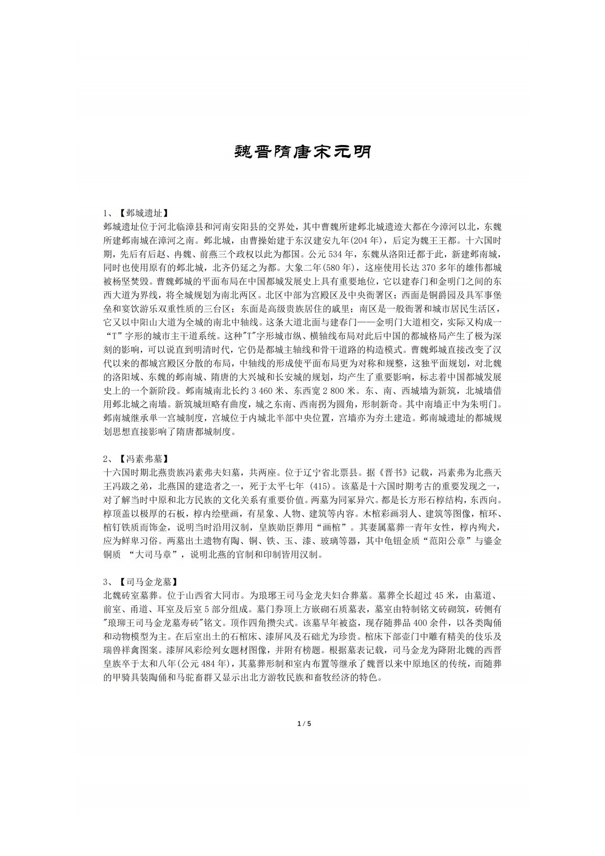 黑龙江大学735考古学专业基础魏晋隋唐宋元明
