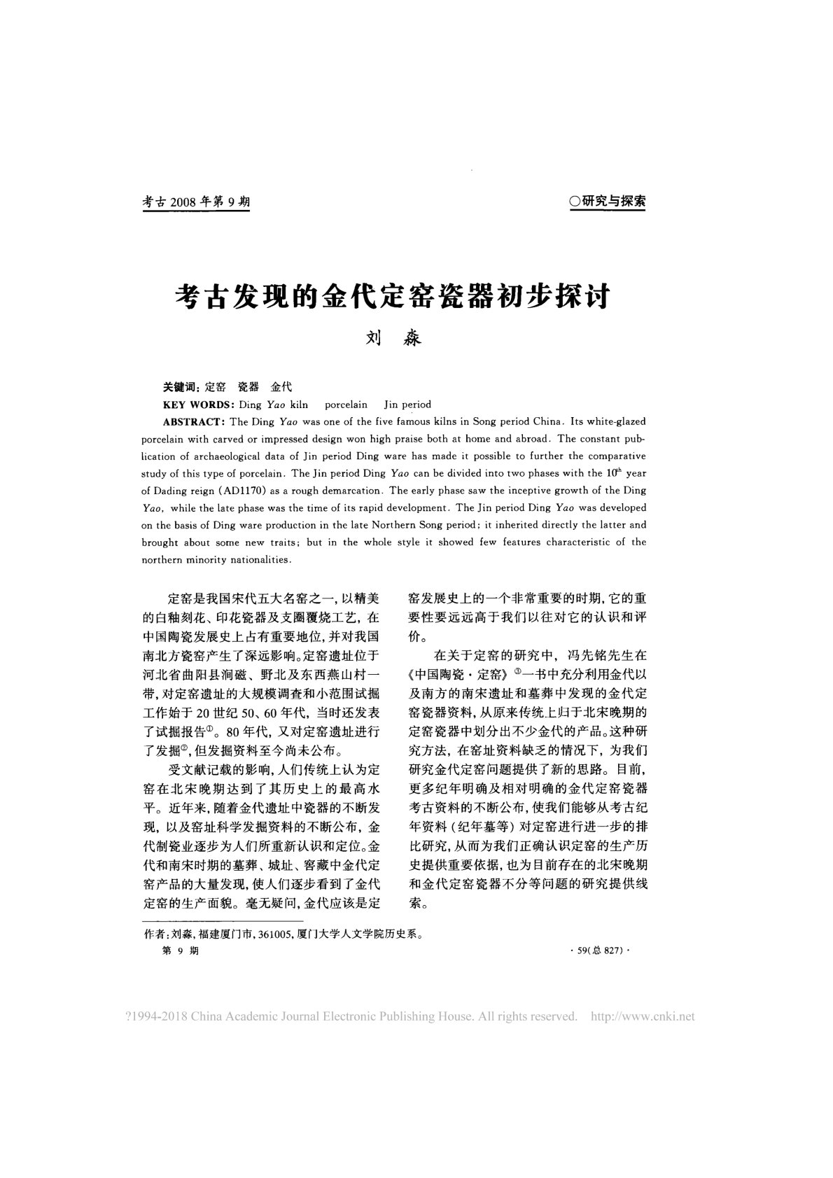 黑龙江大学735考古学专业基础考古发现 的金 代定窑瓷器初步探讨