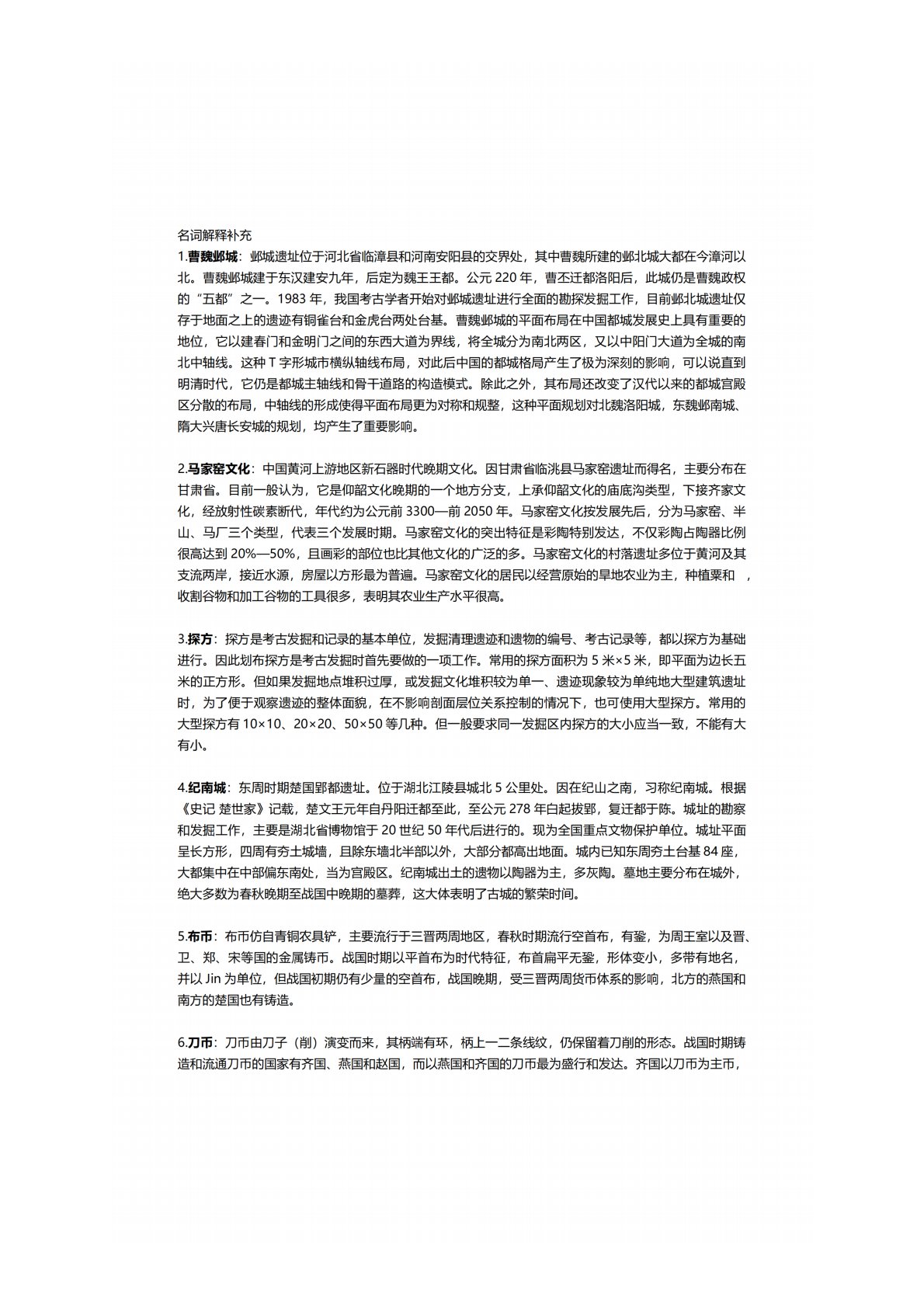 黑龙江大学735考古学专业基础名词解释补充