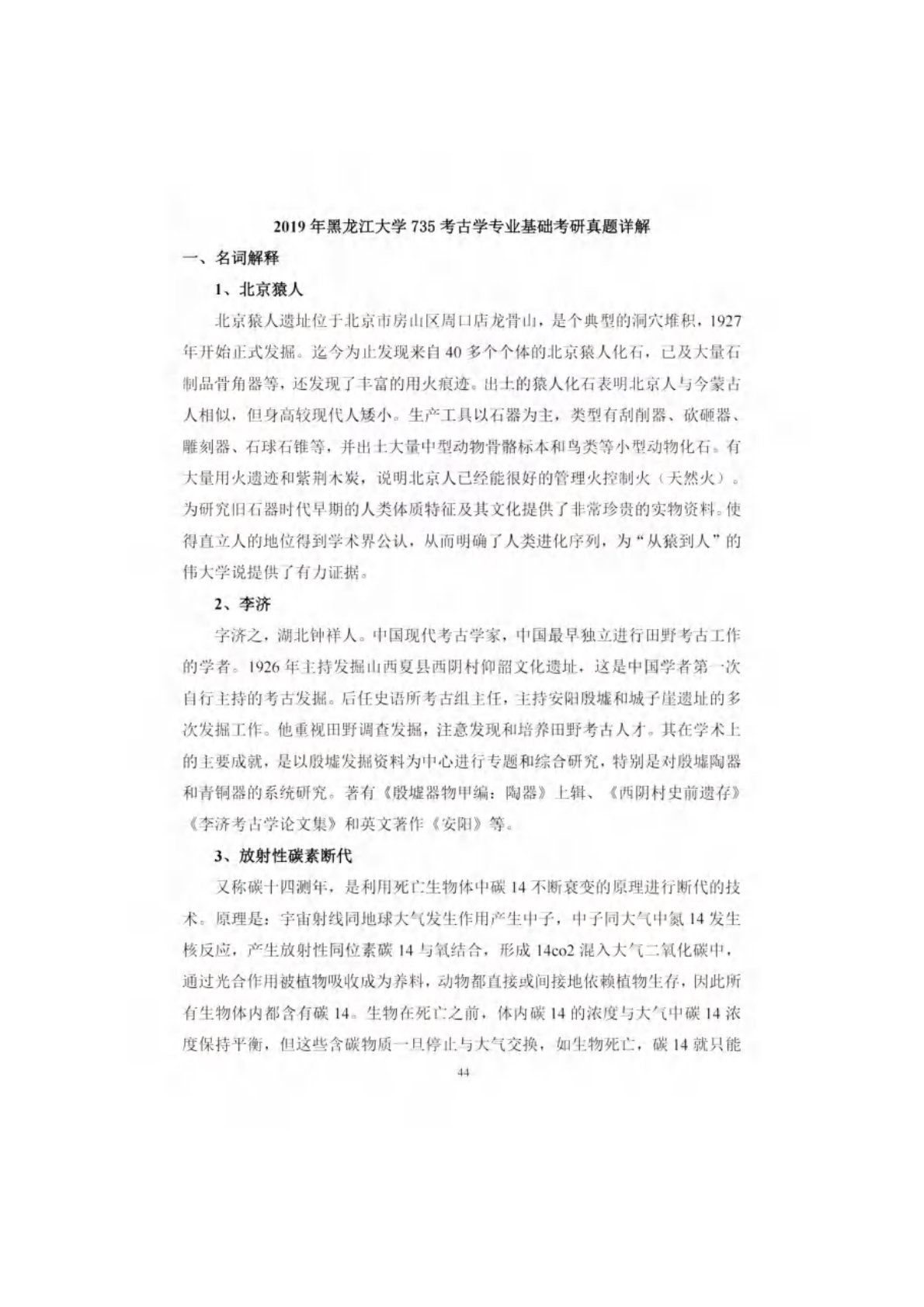 黑龙江大学735考古学专业基础考研真题参考解析2019年真题答案