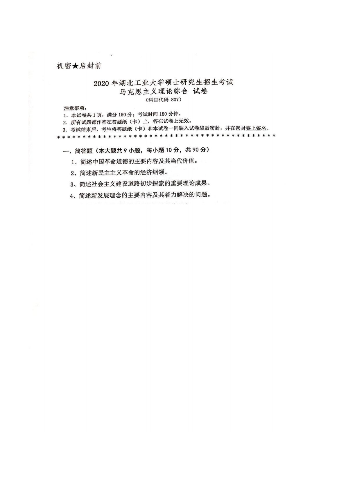 湖北工业大学693马克思主义基本原理综合2020年真题
