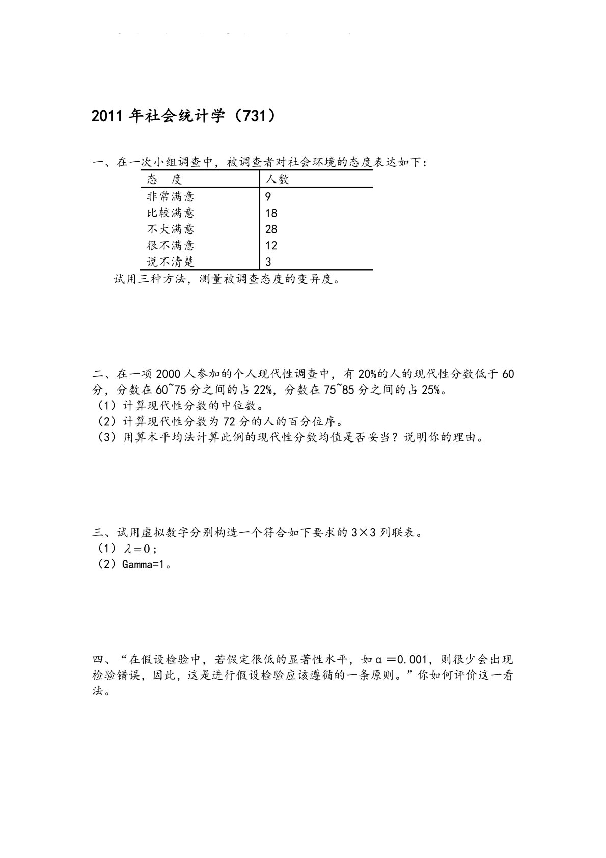复旦大学731社会研究方法2011年真题