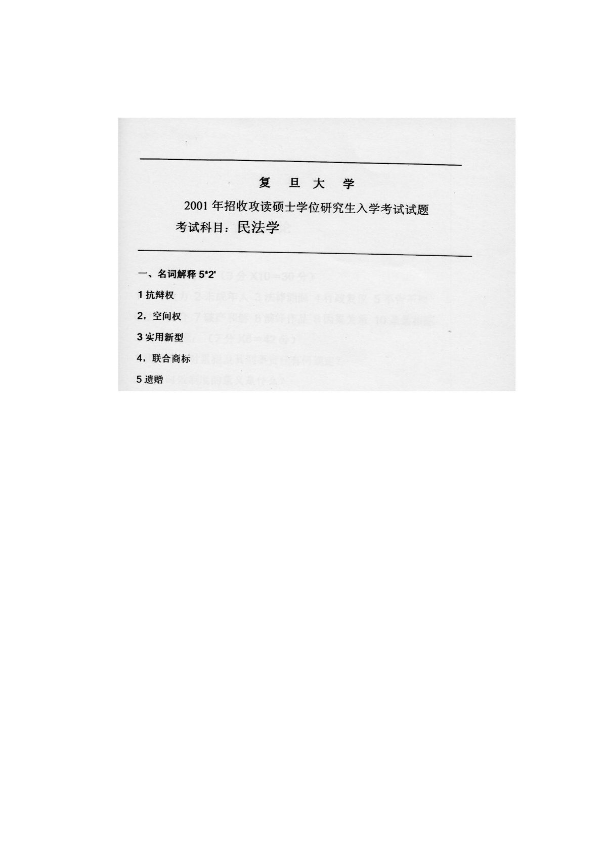 复旦大学839应用法学2001年真题(民法学)