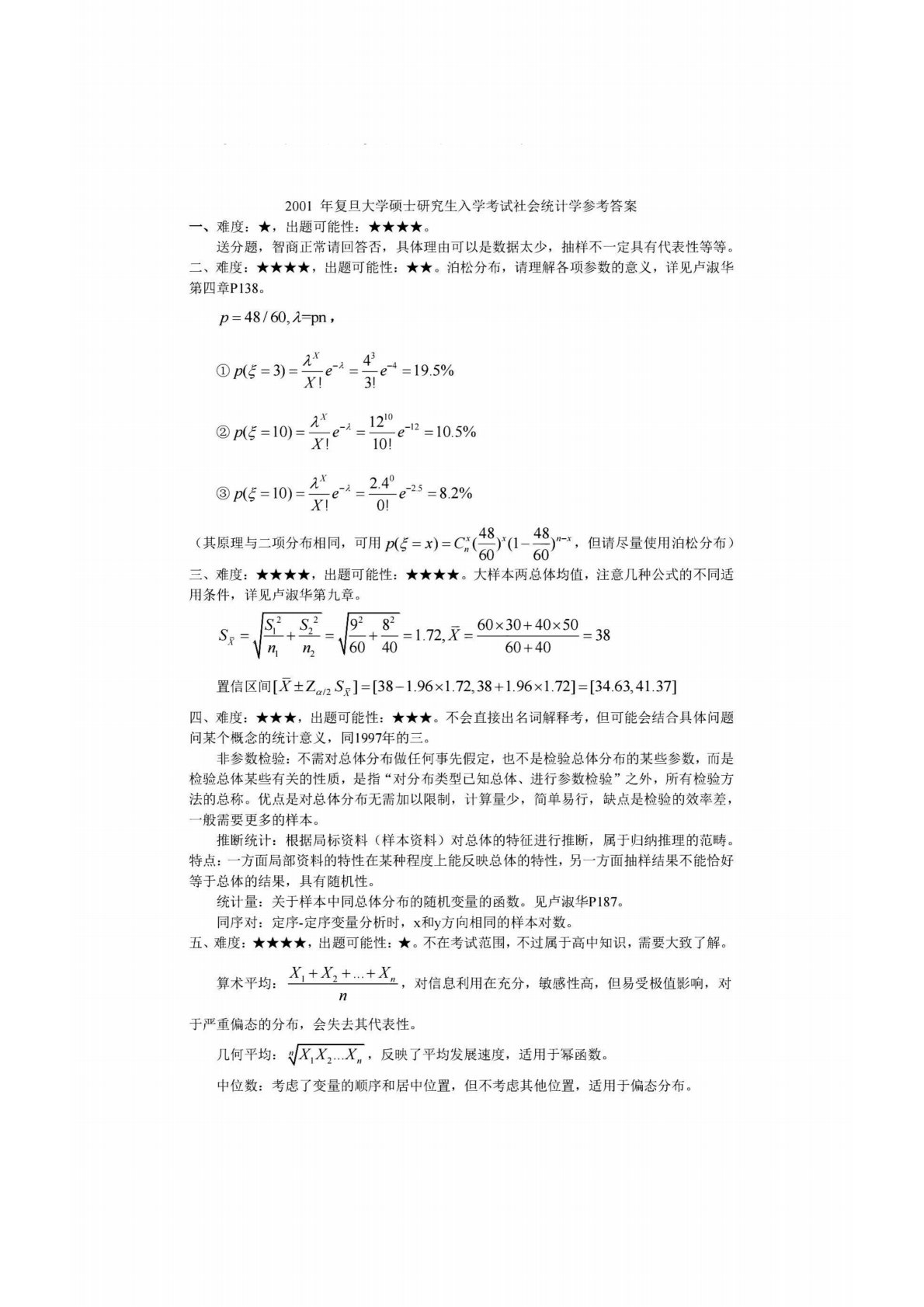 复旦大学731社会研究方法2001年真题答案