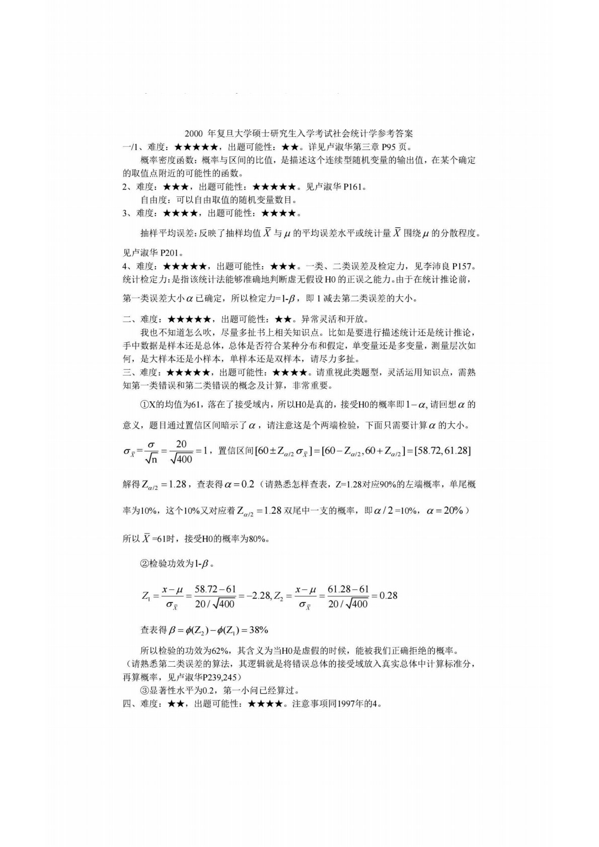 复旦大学731社会研究方法2000年真题答案