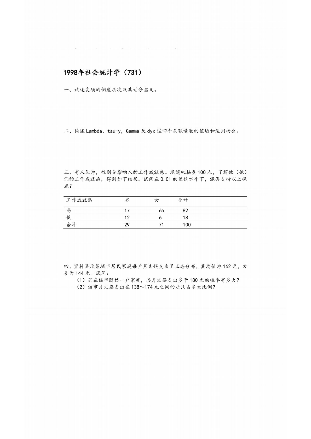 复旦大学731社会研究方法1998年真题