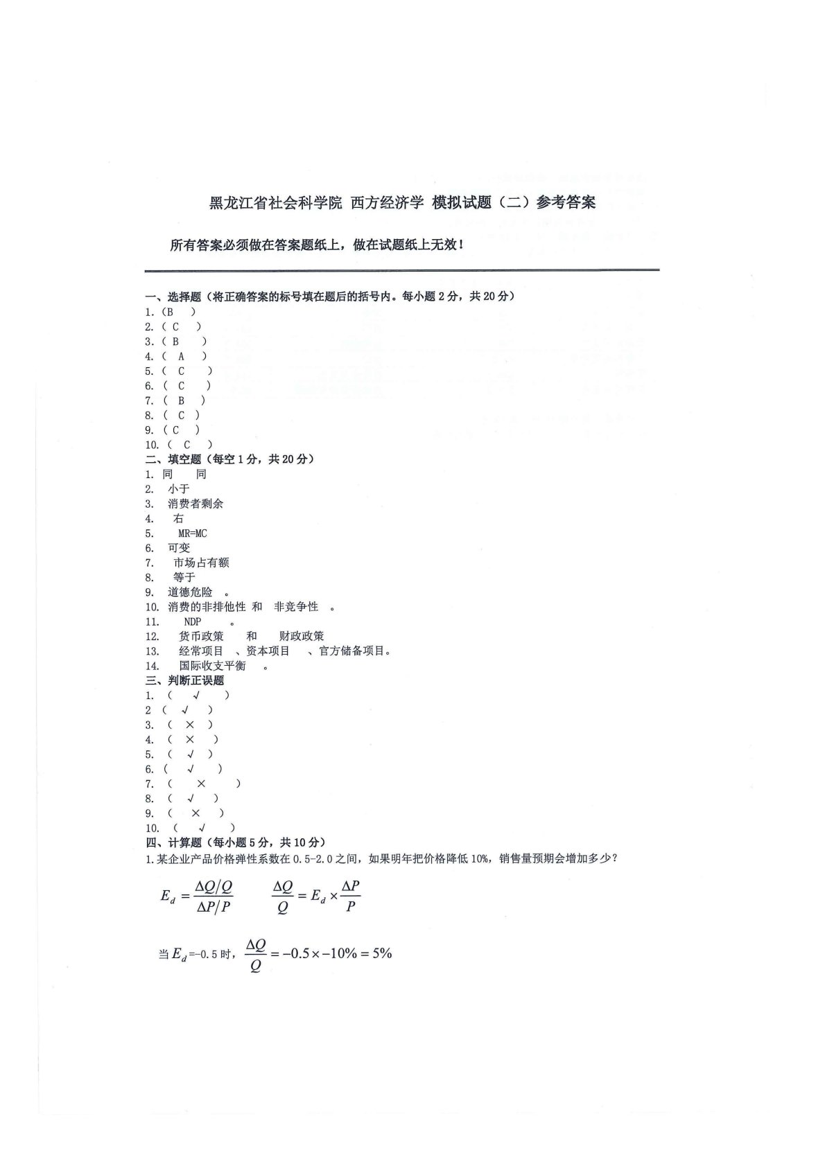 黑龙江省社会科学院801西方经济学模拟试题二答案