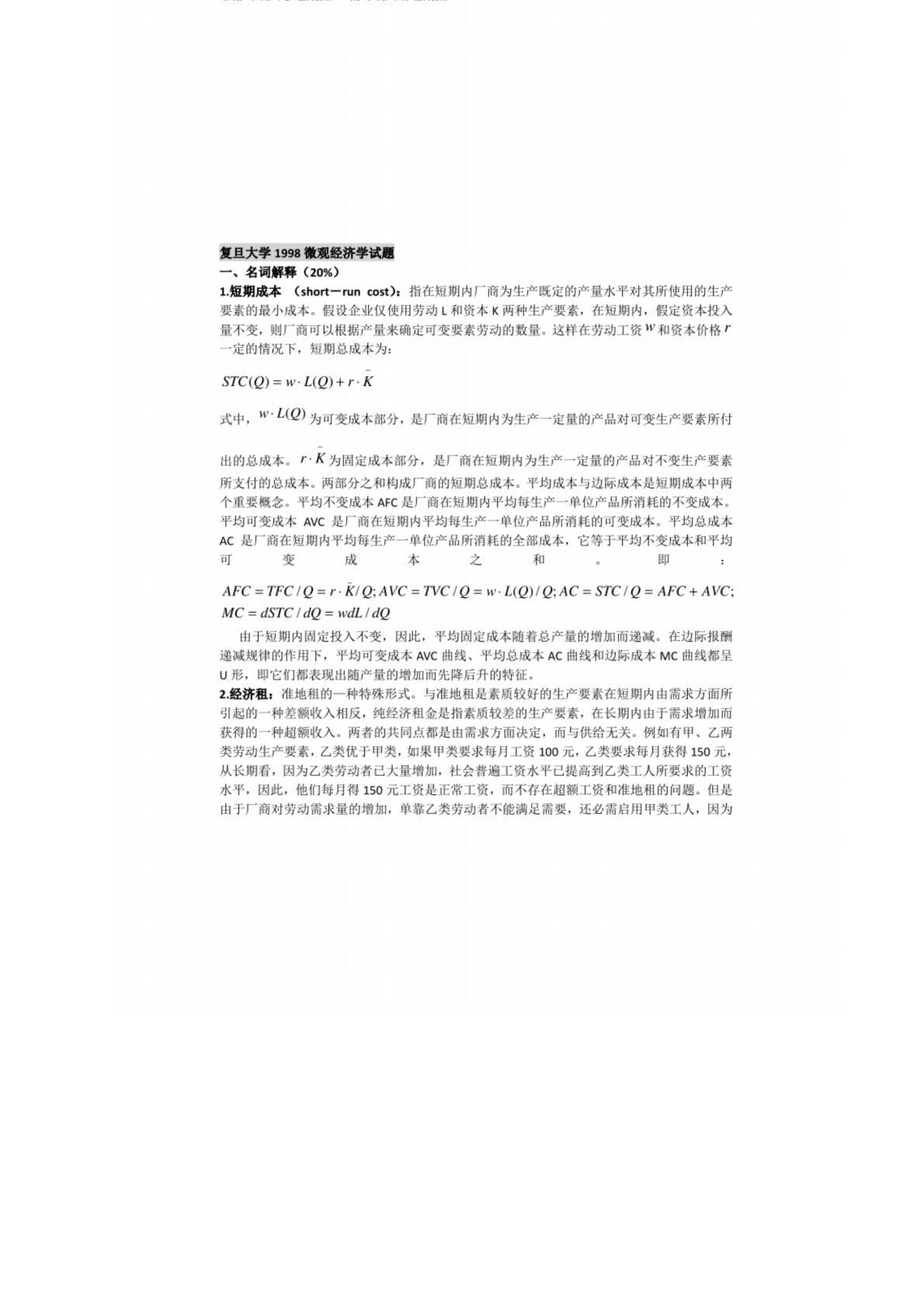 复旦大学860微观经济学1998年真题答案