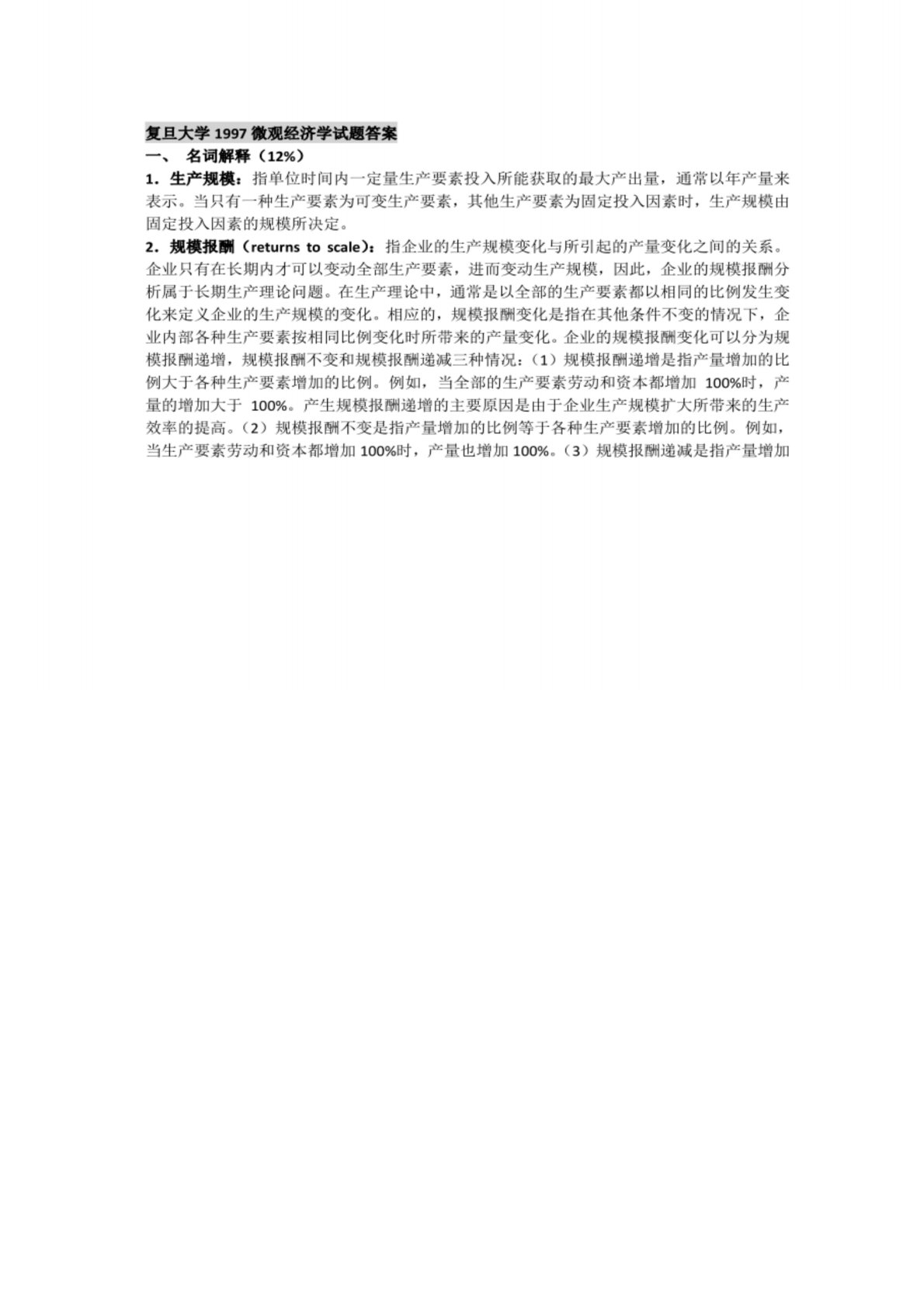 复旦大学860微观经济学1997年真题答案