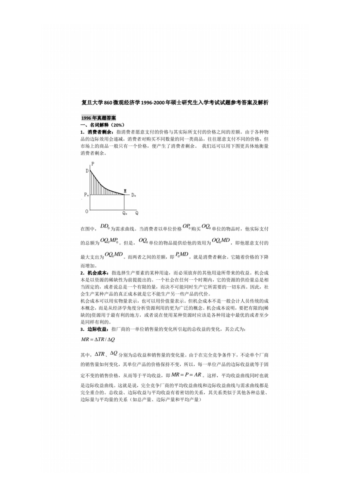 复旦大学860微观经济学1996年真题答案