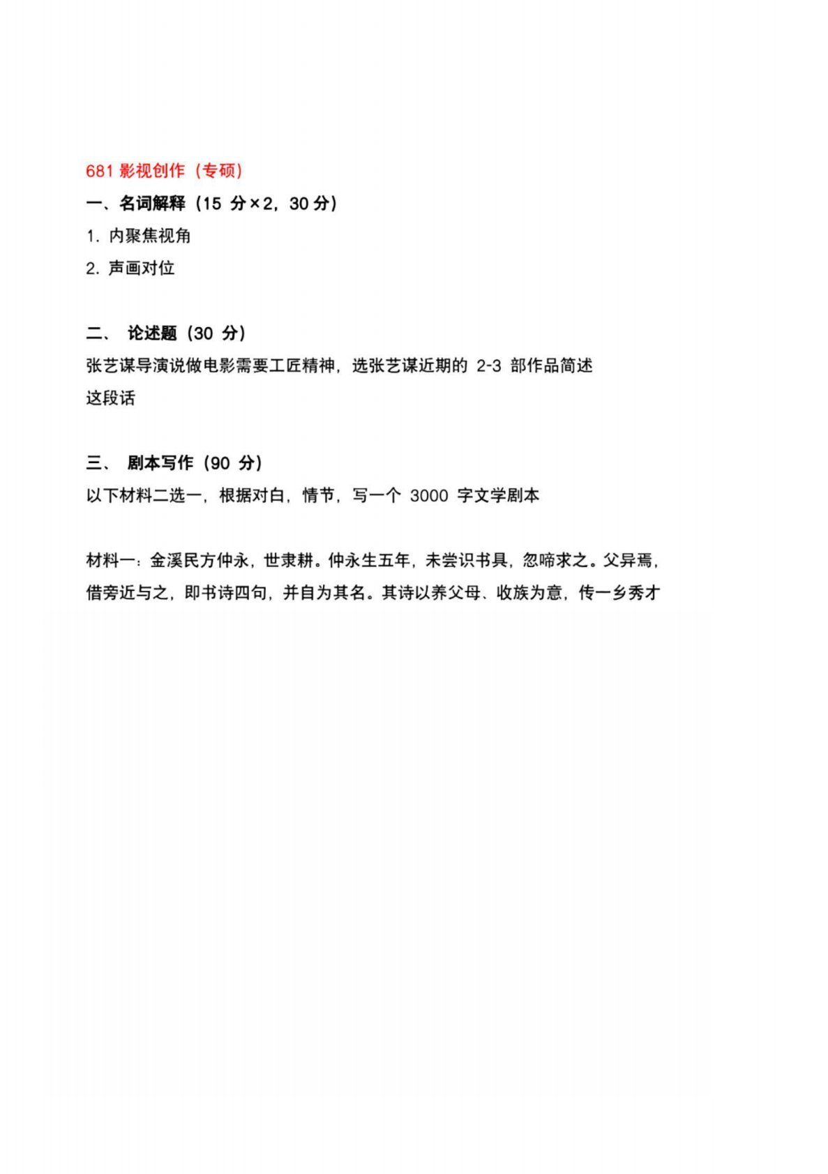 西南大学681影视创作(专硕)2023年真题