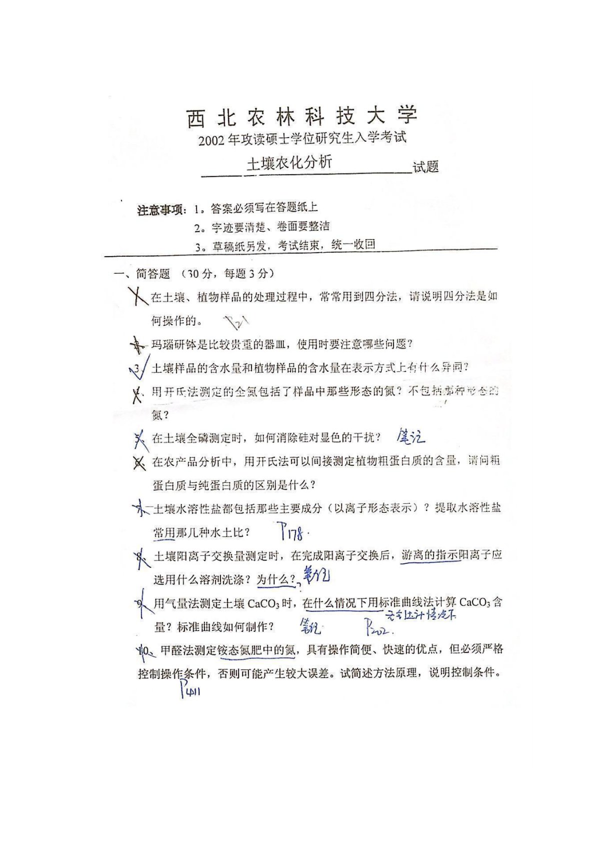 西北农林科技大学土壤农化分析2002年复试真题