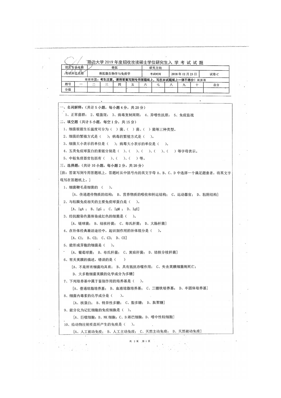 延边大学860兽医微生物学与免疫学(专硕)2019年真题