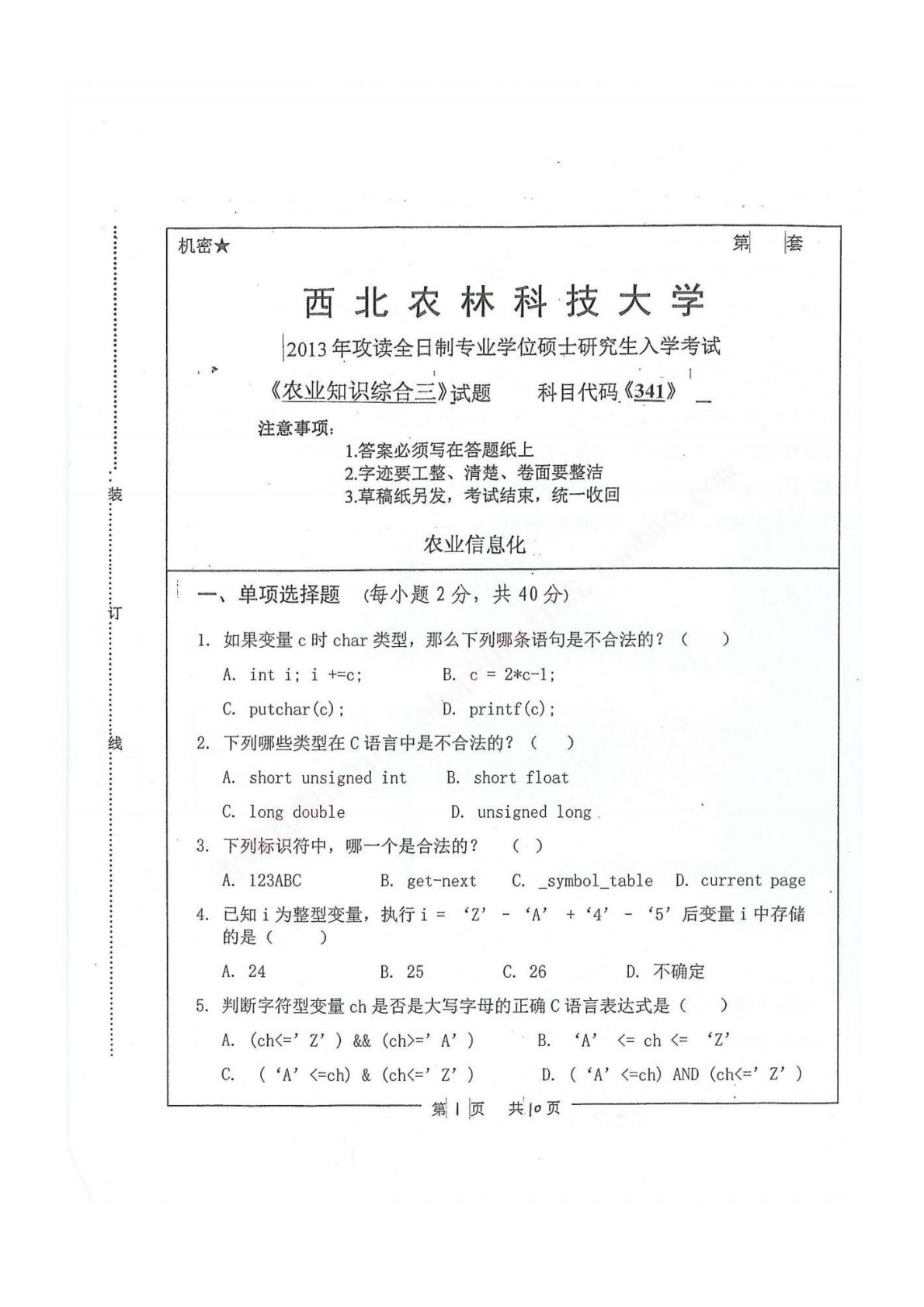 西北农林科技大学341农业知识综合三2013年真题