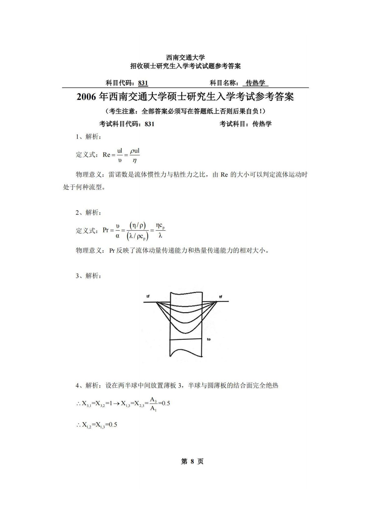 西南交通大学831传热学2006年真题答案