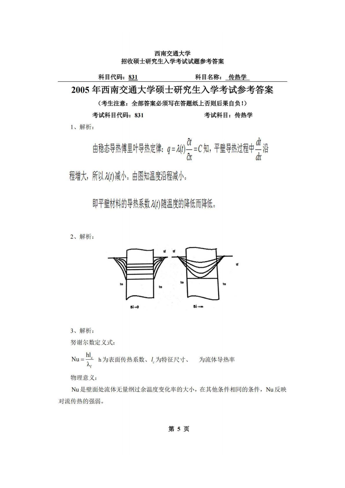 西南交通大学831传热学2005年真题答案