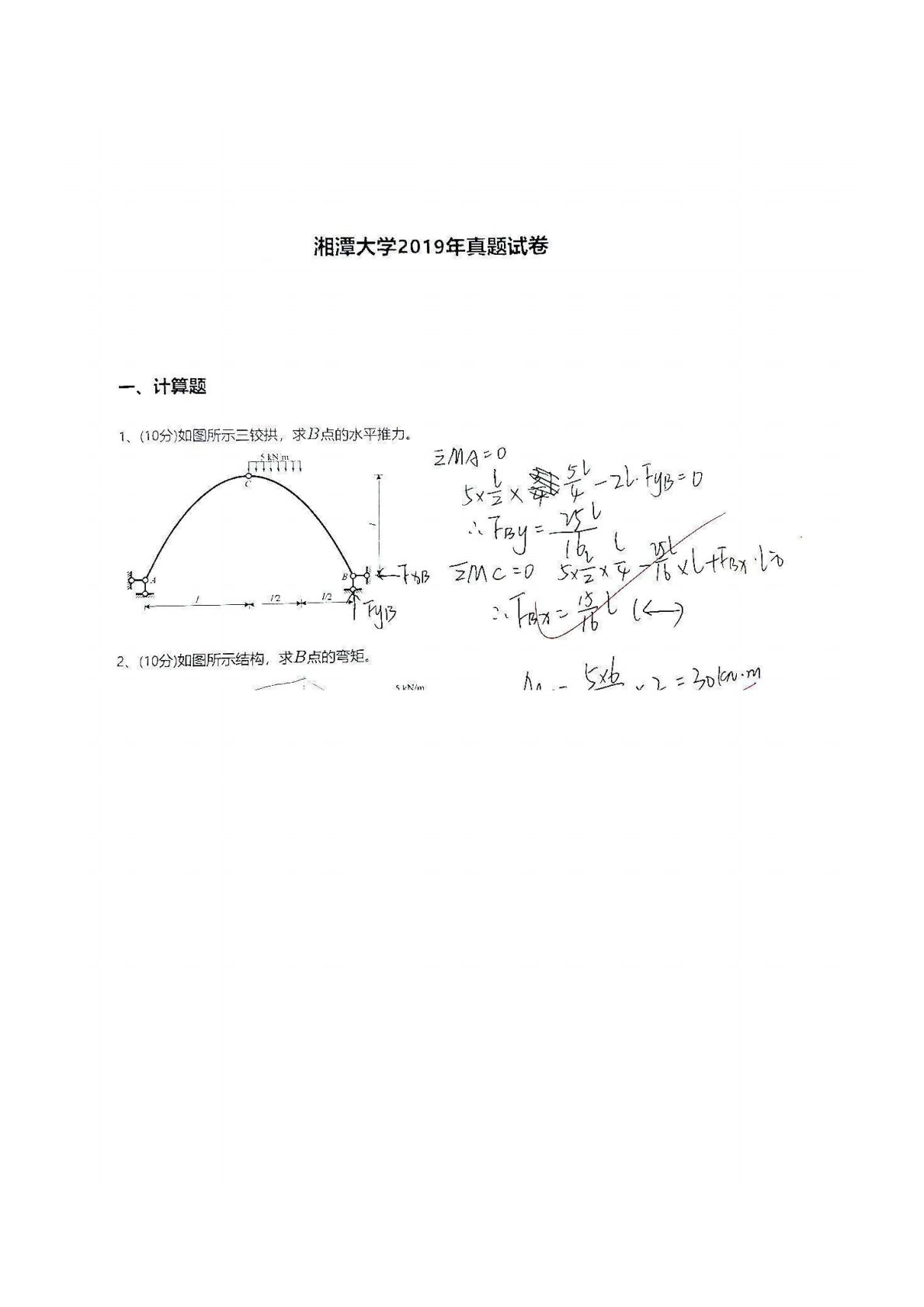 湘潭大学839结构力学2019年真题答案手写版