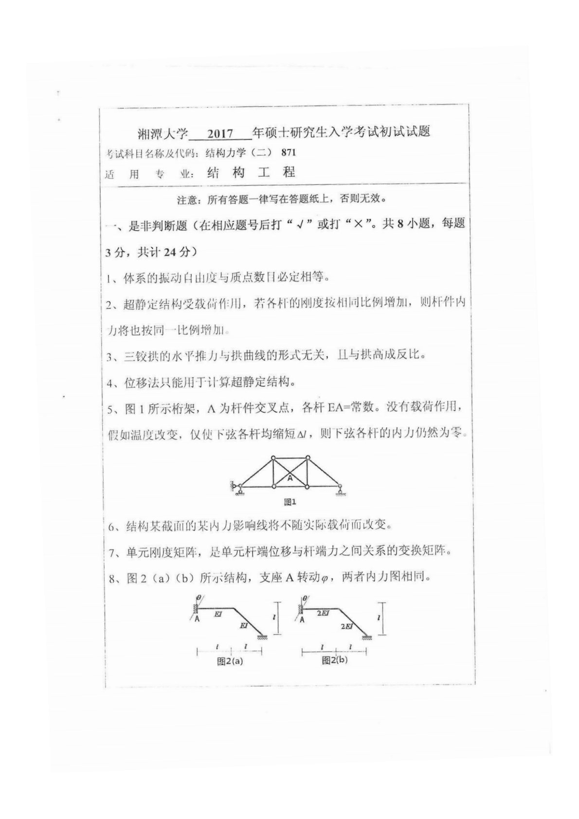 湘潭大学839结构力学2017年真题1
