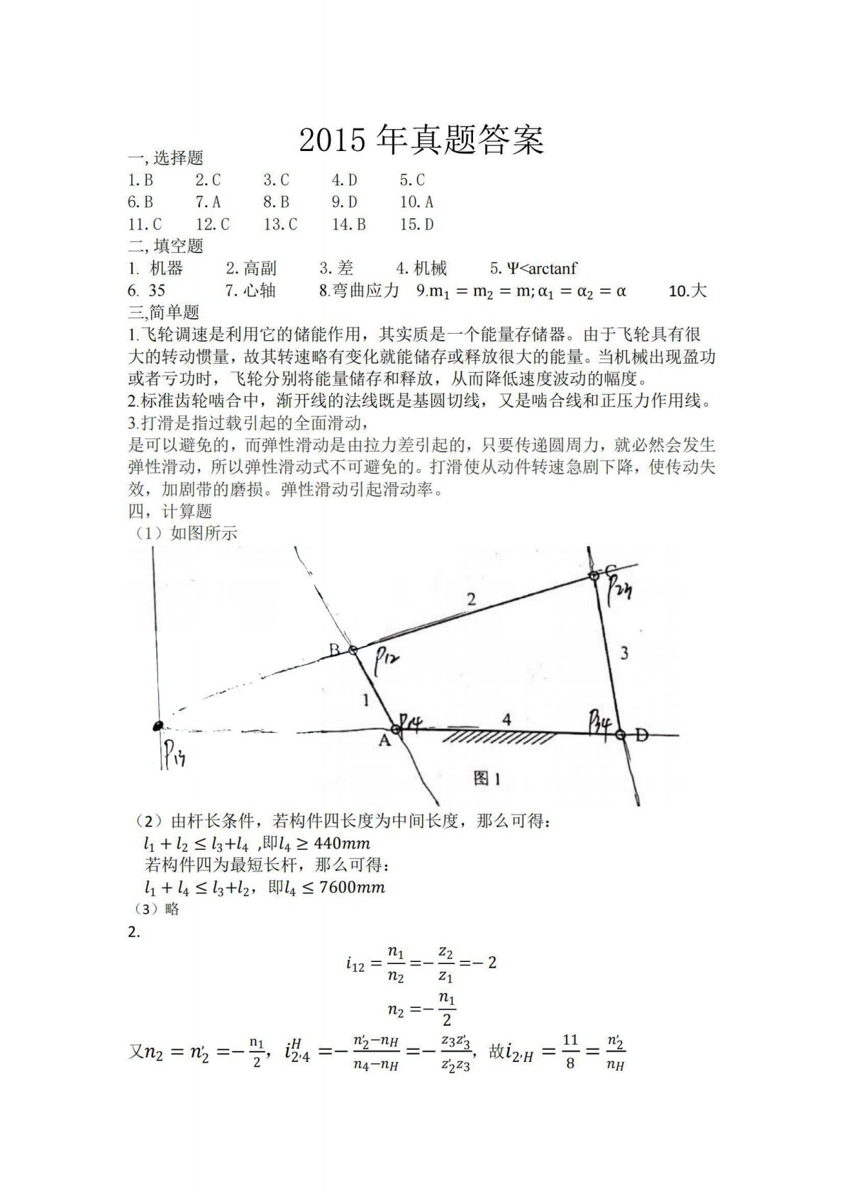 西南林业大学820机械设计基础2015真题答案