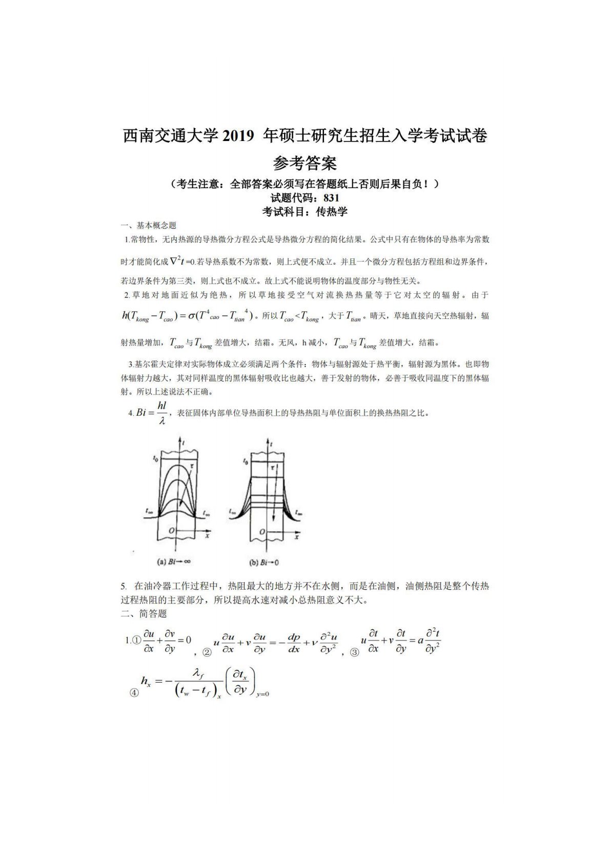 西南交通大学831传热学2019年真题答案