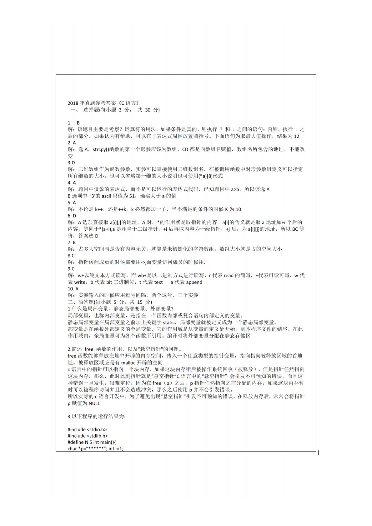 西北农林科技大学842数据结构和C语言2018年真题答案