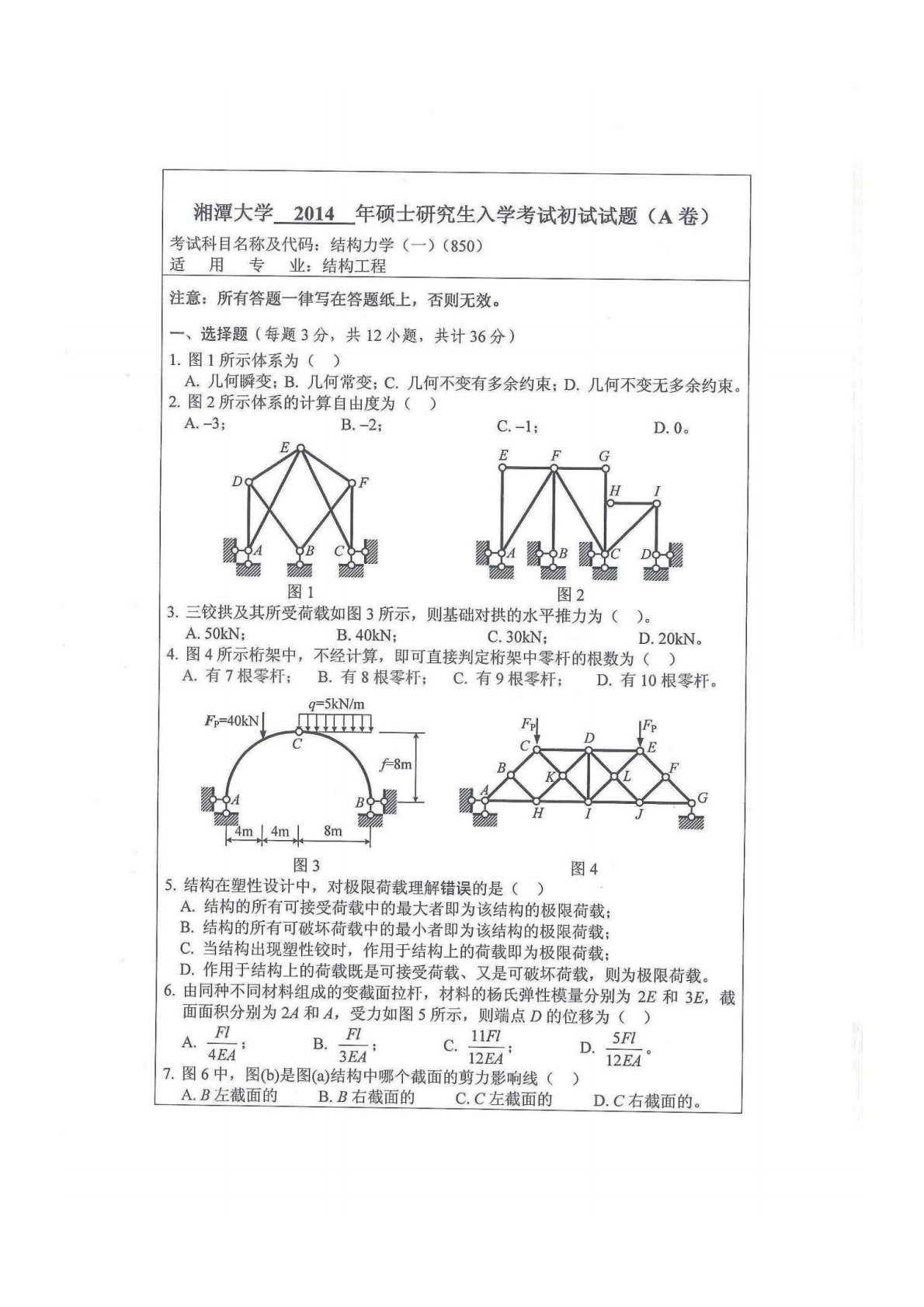 湘潭大学839结构力学2013年真题