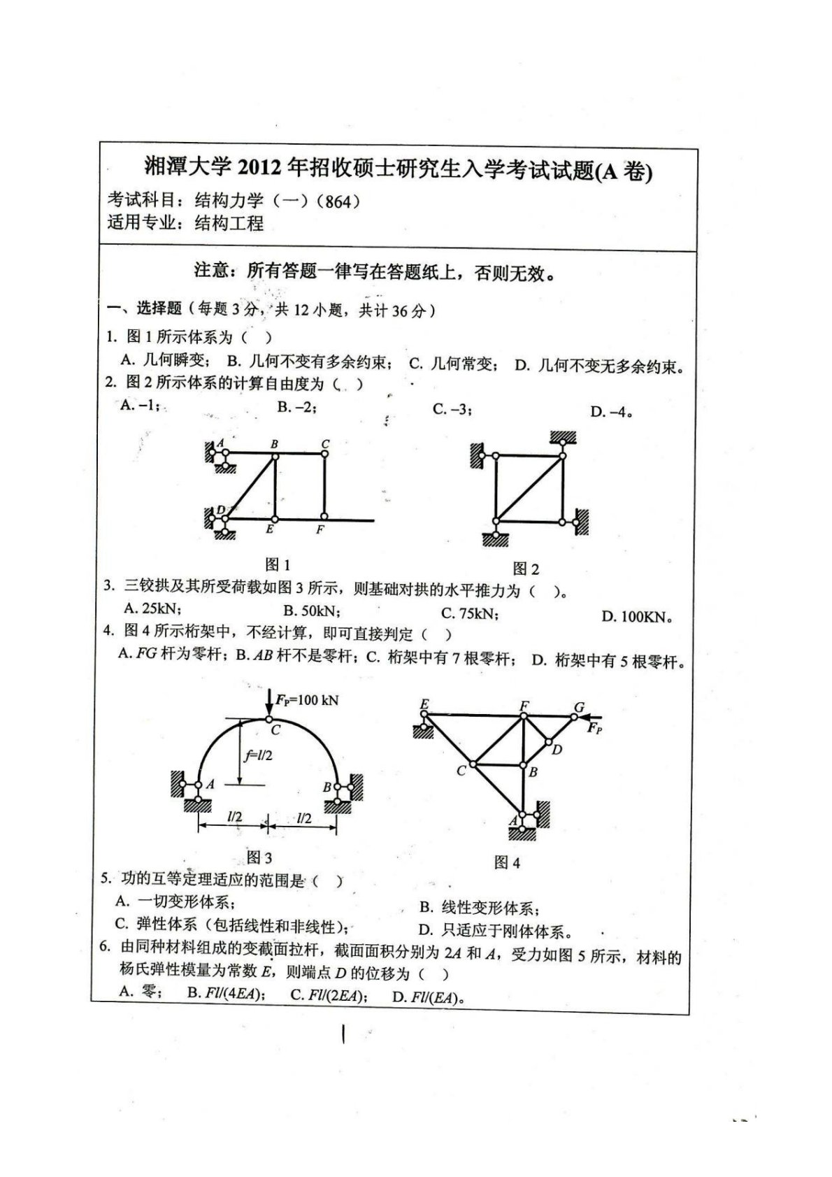 湘潭大学839结构力学2012年真题