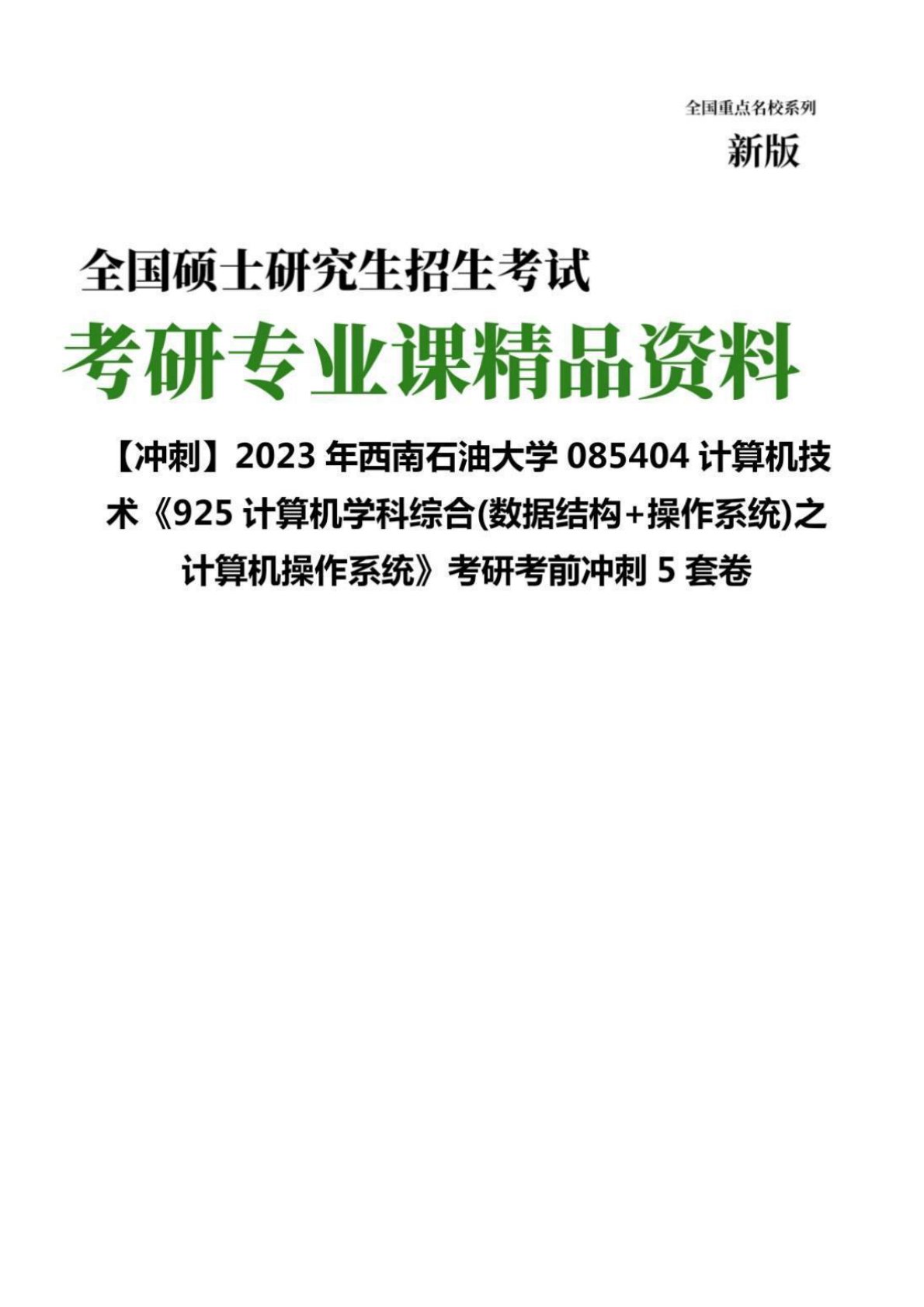 西南石油大学925计算机学科综合(数据结构+操作系统)五套卷