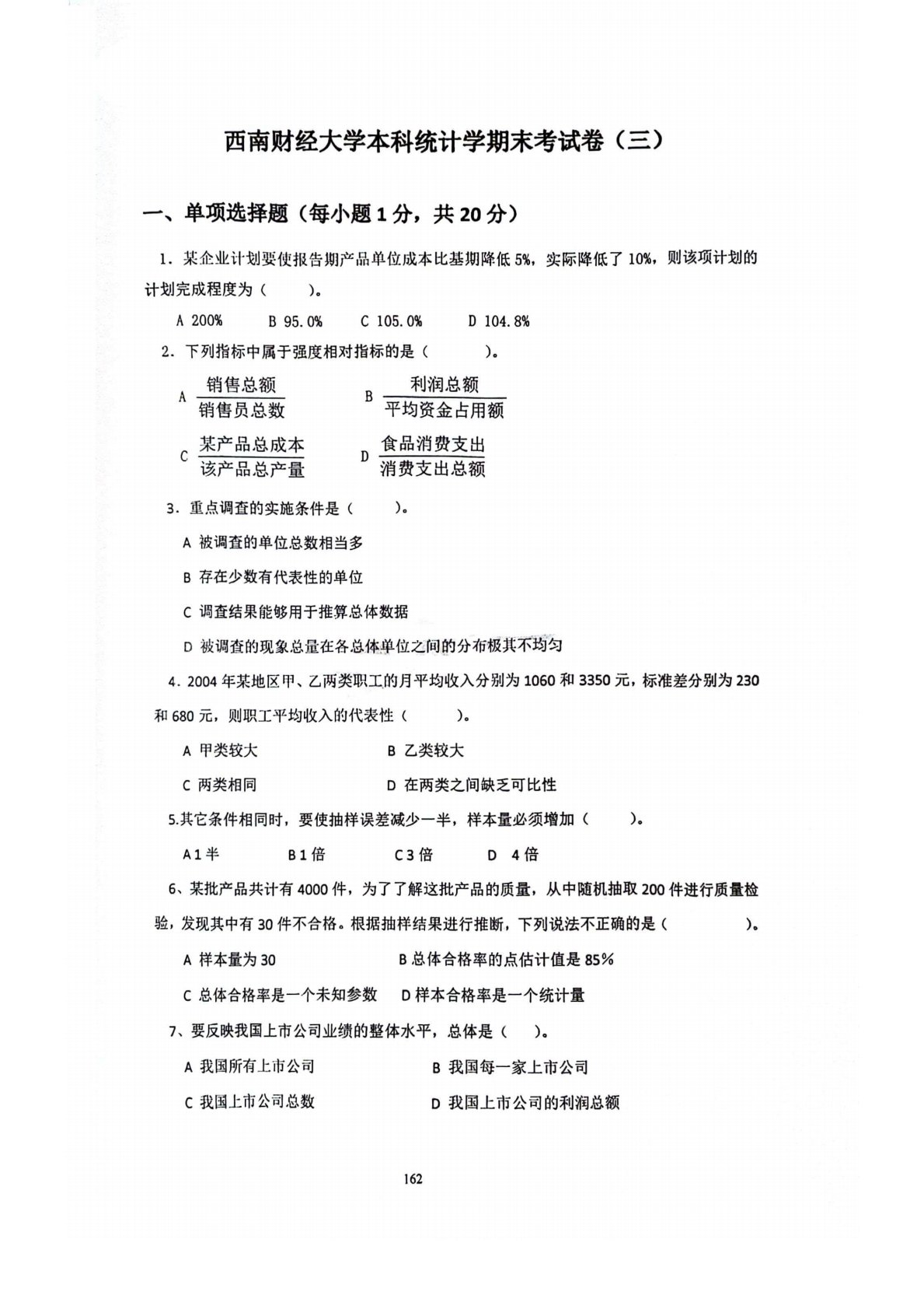 西南财经大学432统计学期末考试卷三