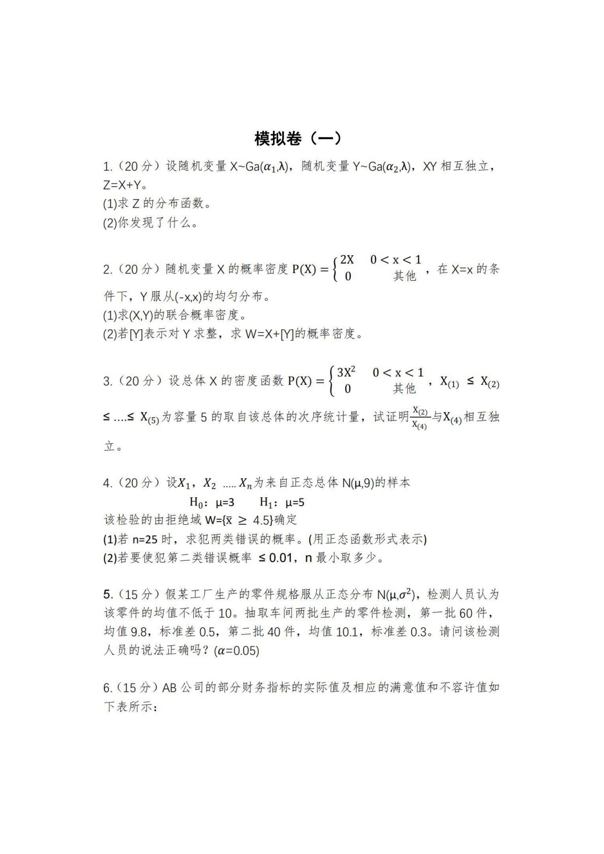 西南财经大学432统计学模拟卷一