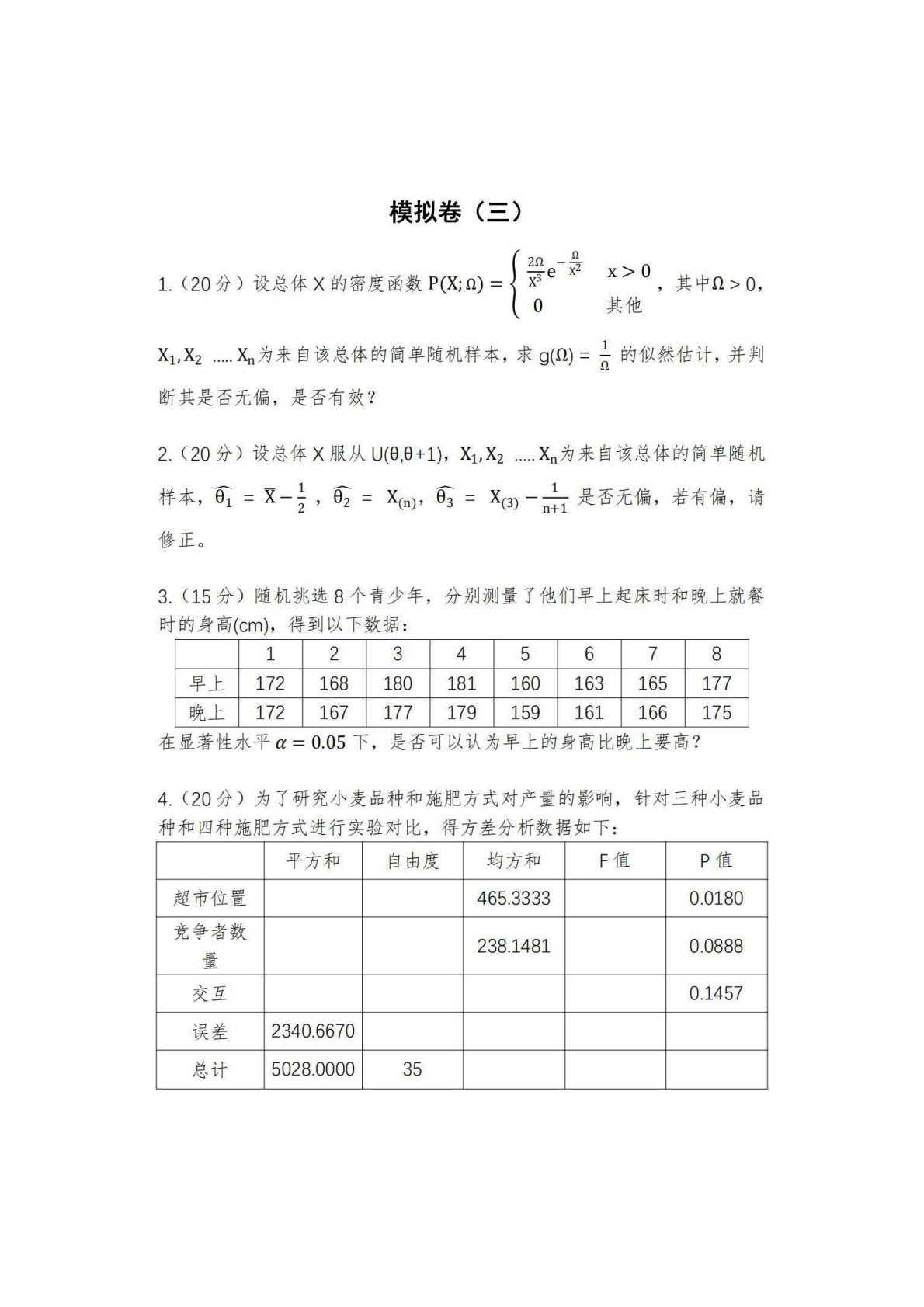 西南财经大学432统计学模拟卷三