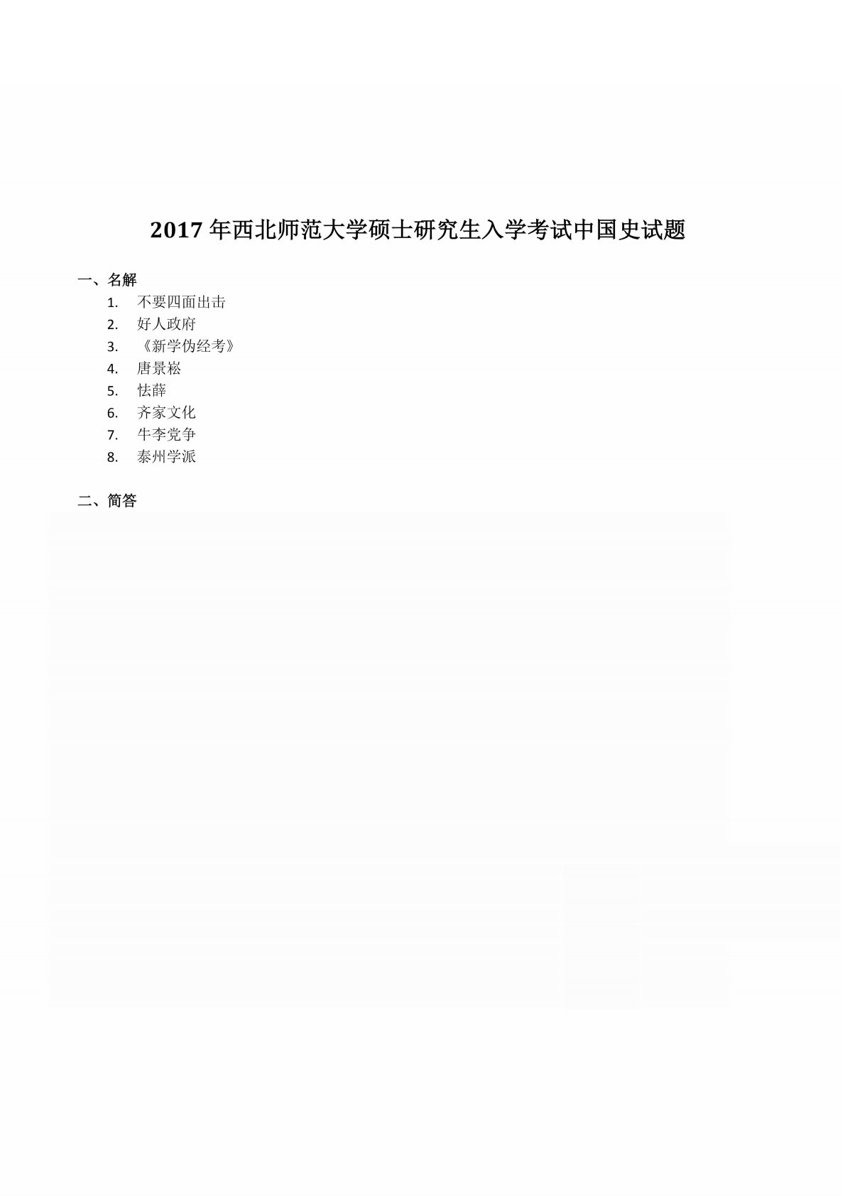 西北师范大学313历史学专业基础2017年真题