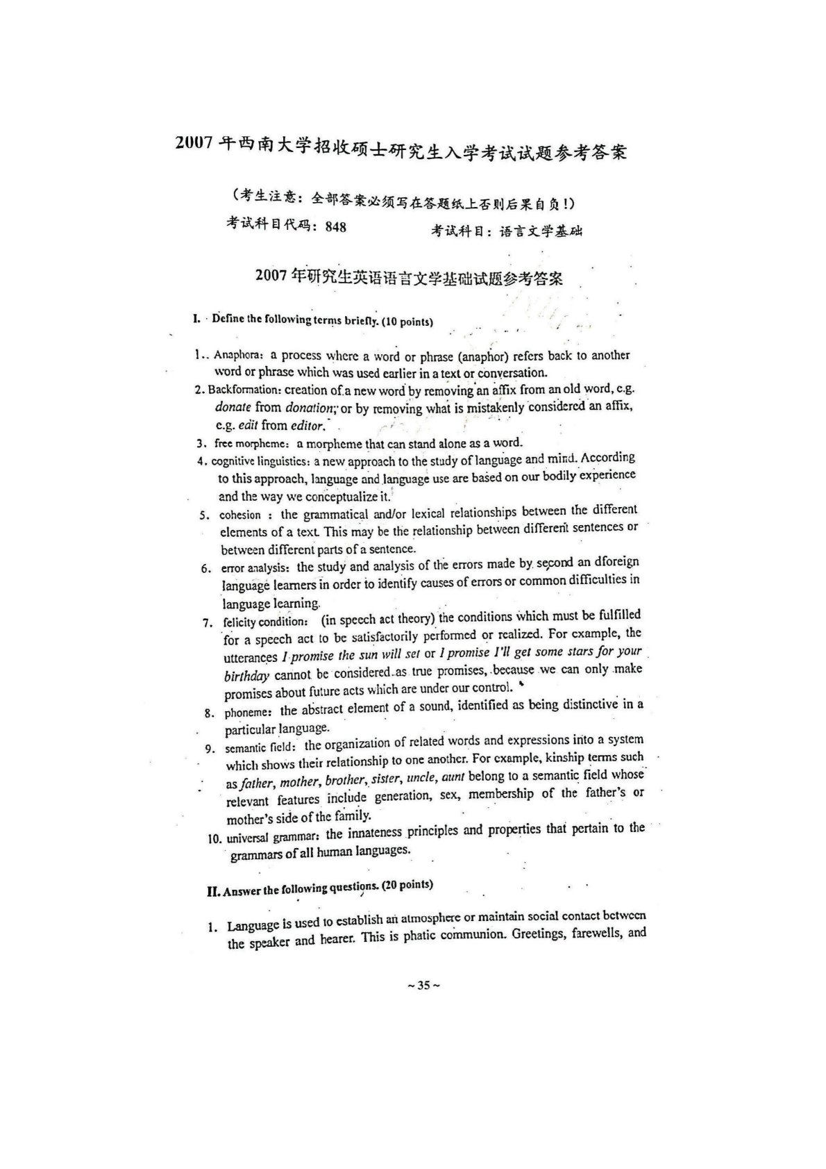 西南大学848语言文学基础2007年真题答案
