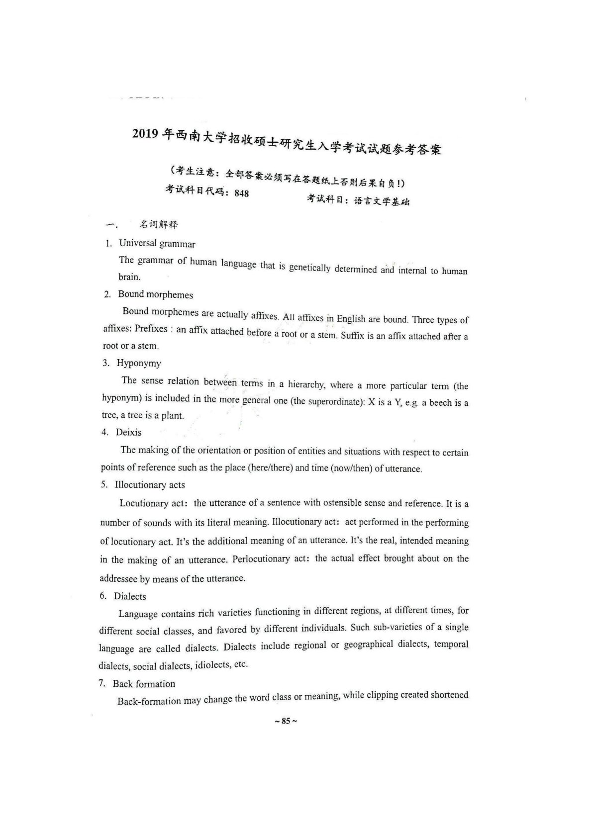 西南大学848语言文学基础2019年真题答案
