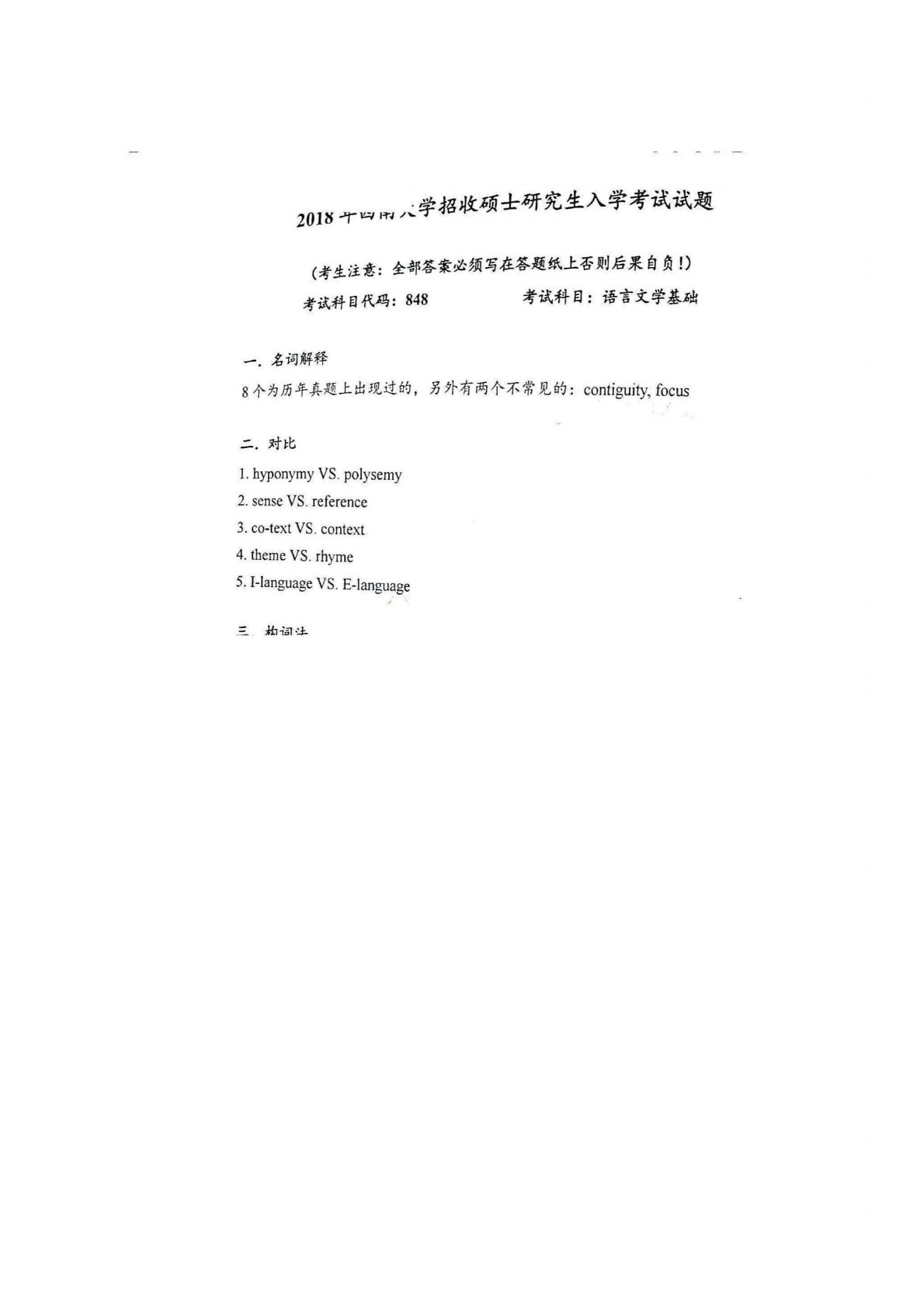 西南大学848语言文学基础2018年真题