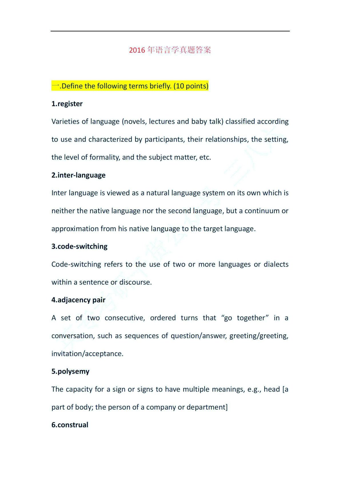 西南大学848语言文学基础2016年真题解析