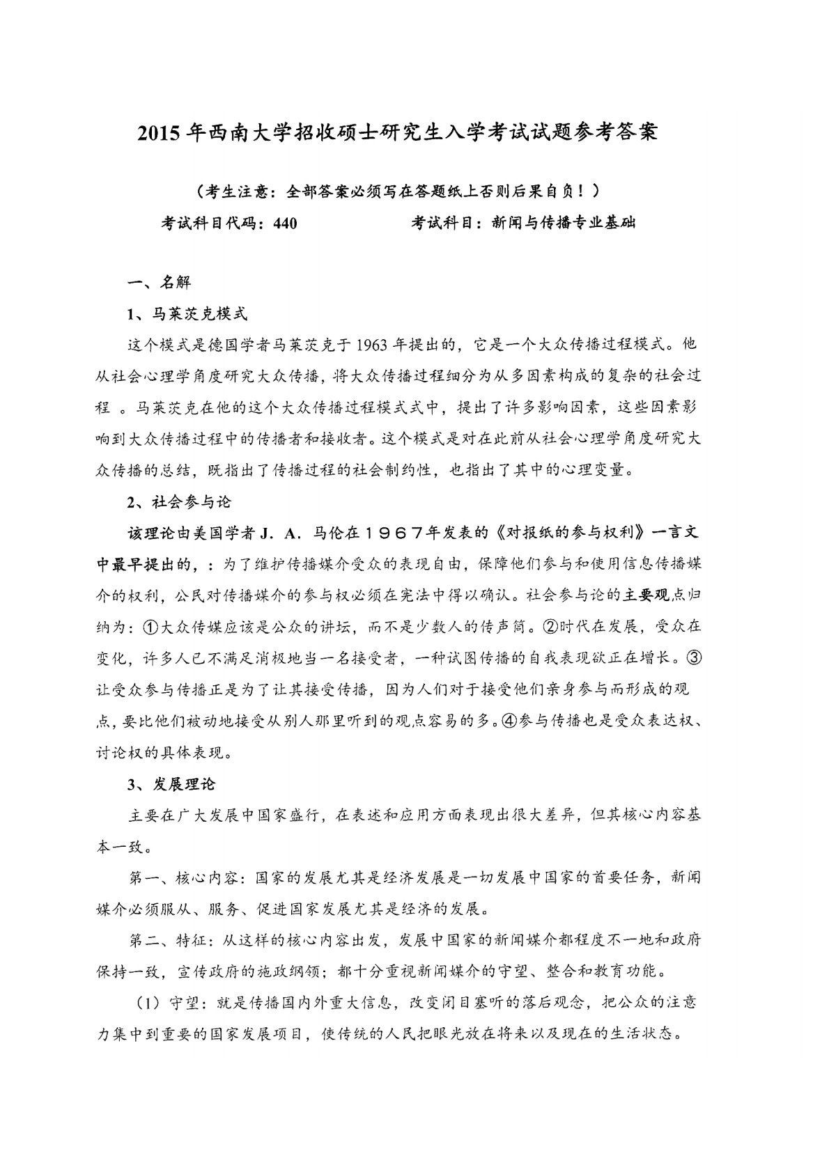 西南大学440新闻与传播专业基础2015年真题答案