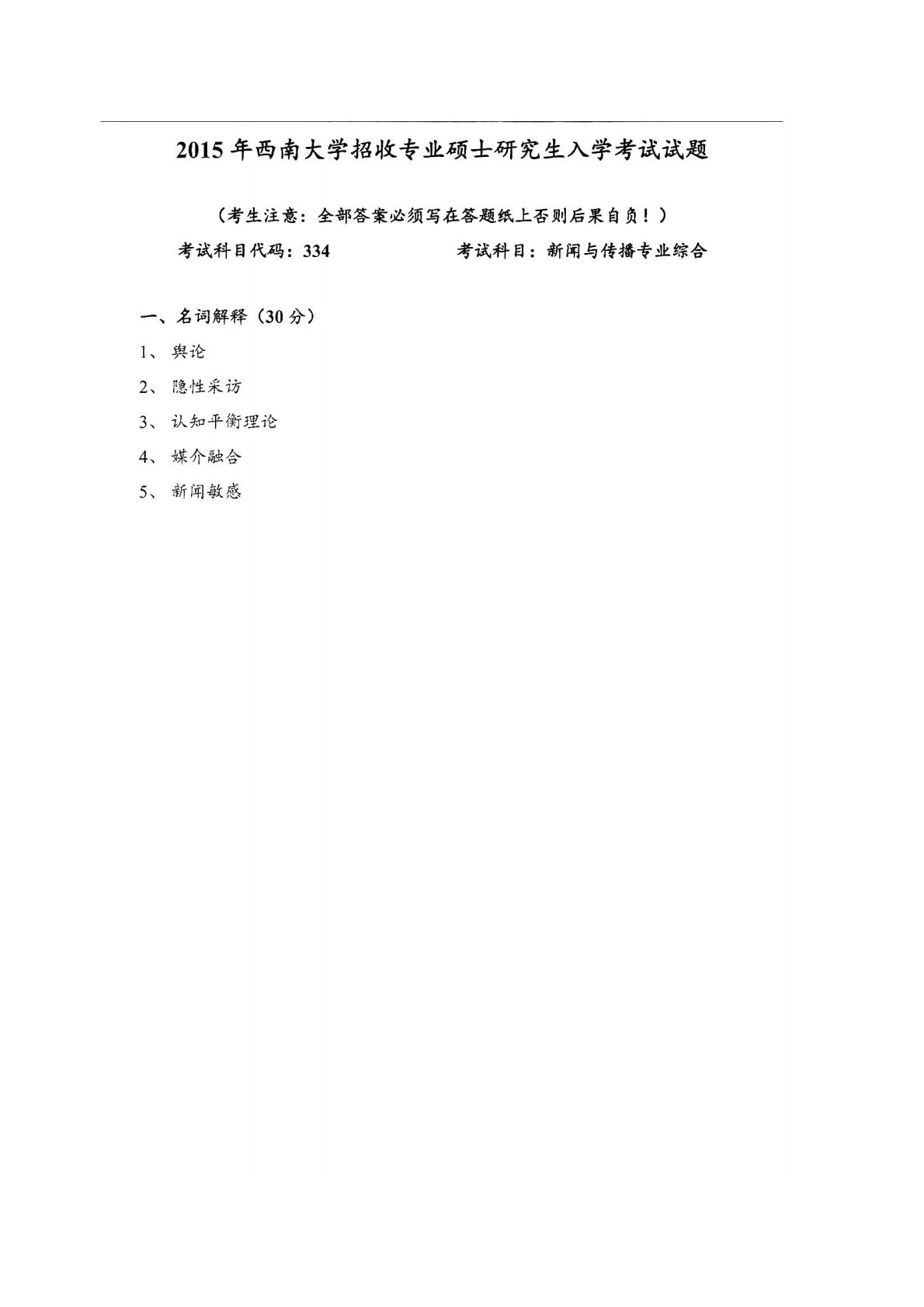 西南大学334新闻与传播专业综合能力2015年真题