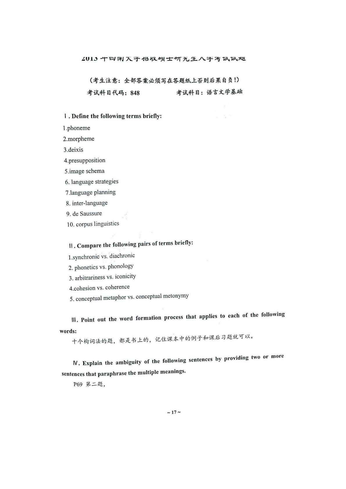 西南大学848语言文学基础2013年真题